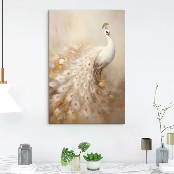 Pictură pe pânză Pasăre ușoară cu coadă lungă în tonuri aerisite Nr s47309