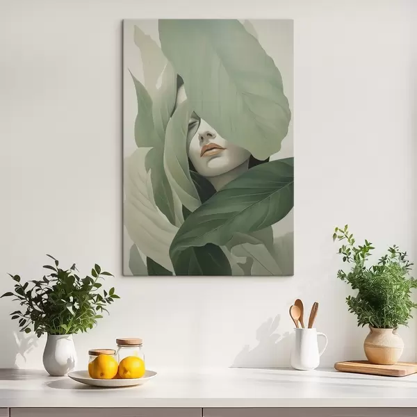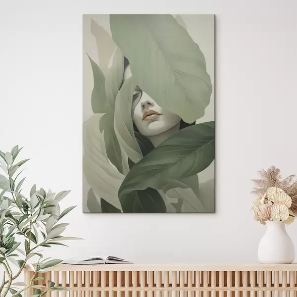 Pictură pe pânză Portret suprarealist al unei fete în frunziș Nr s47332