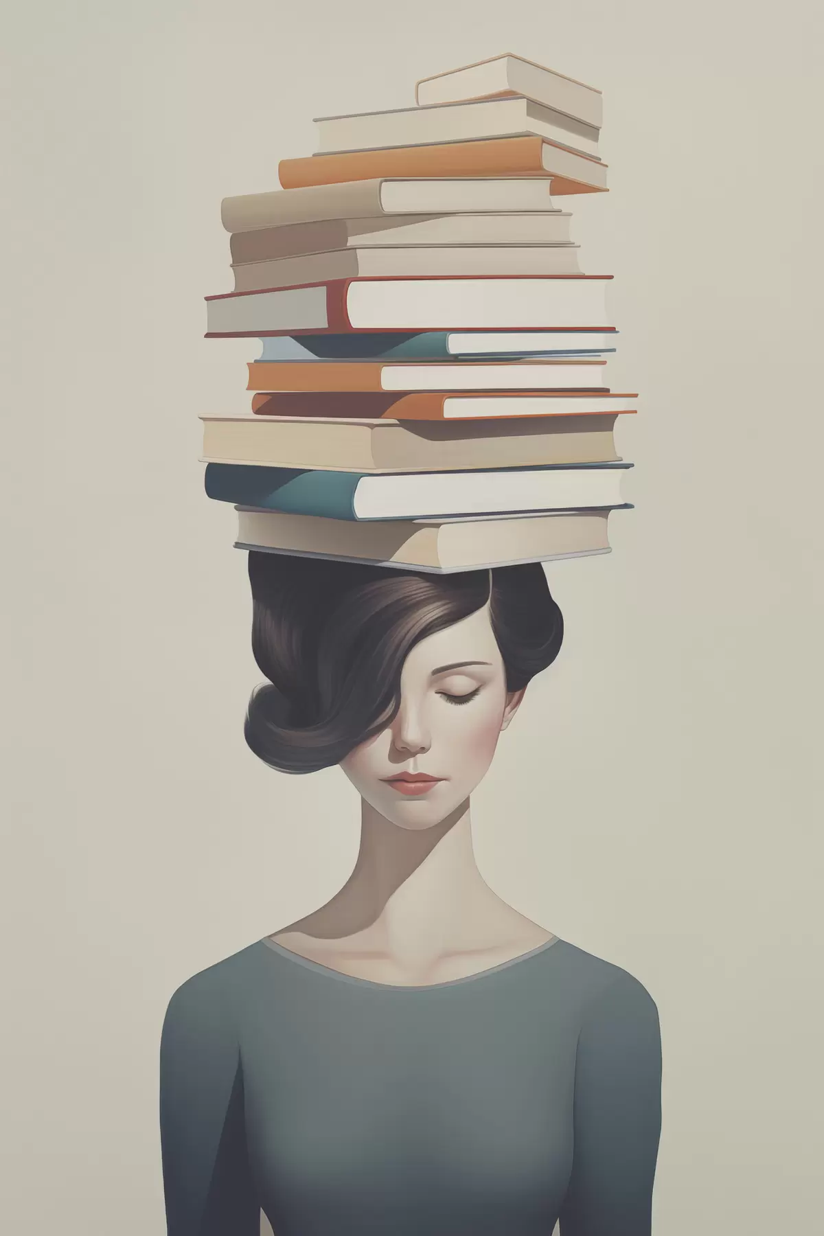 Tablouri Portret suprarealist al unei fete cu cărți s47334