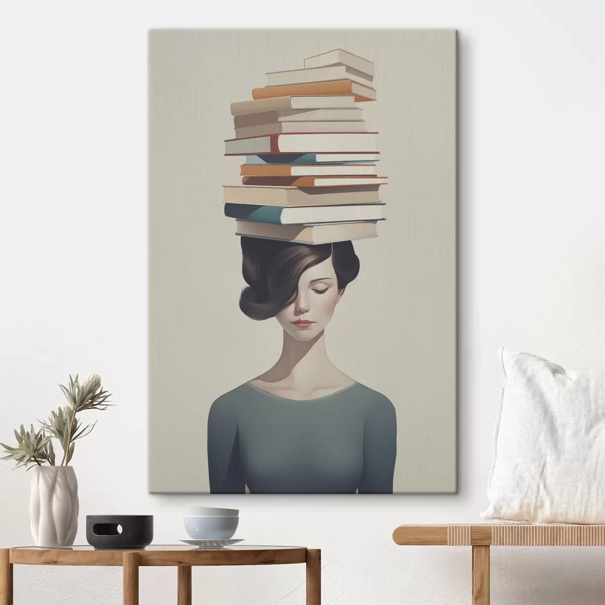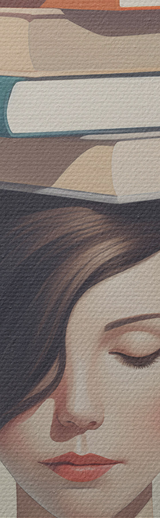 Pictură pe pânză Portret suprarealist al unei fete cu cărți Nr s47334