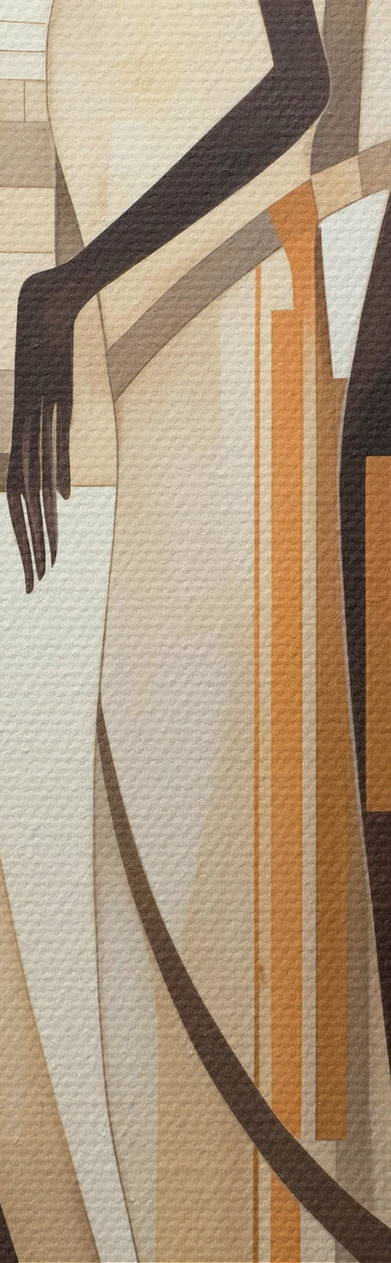 Tablouri Figuri feminine stilizate cu elemente geometrice pe un fundal abstract de linii verticale s47423
