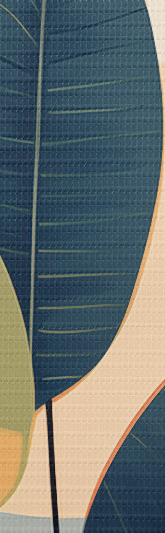 Tablouri Frunze întunecate pe un fundal de forme abstracte în nuanțe de piersic și gri, cu un cerc mare, de culoare galben pal s47424