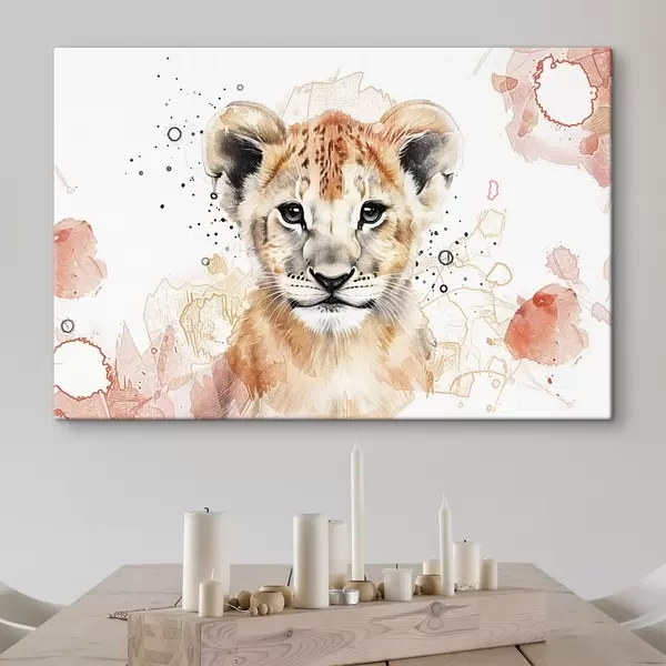 Pictură pe pânză Pui de leu pictat în acuarelă, efect creion Nr s47742