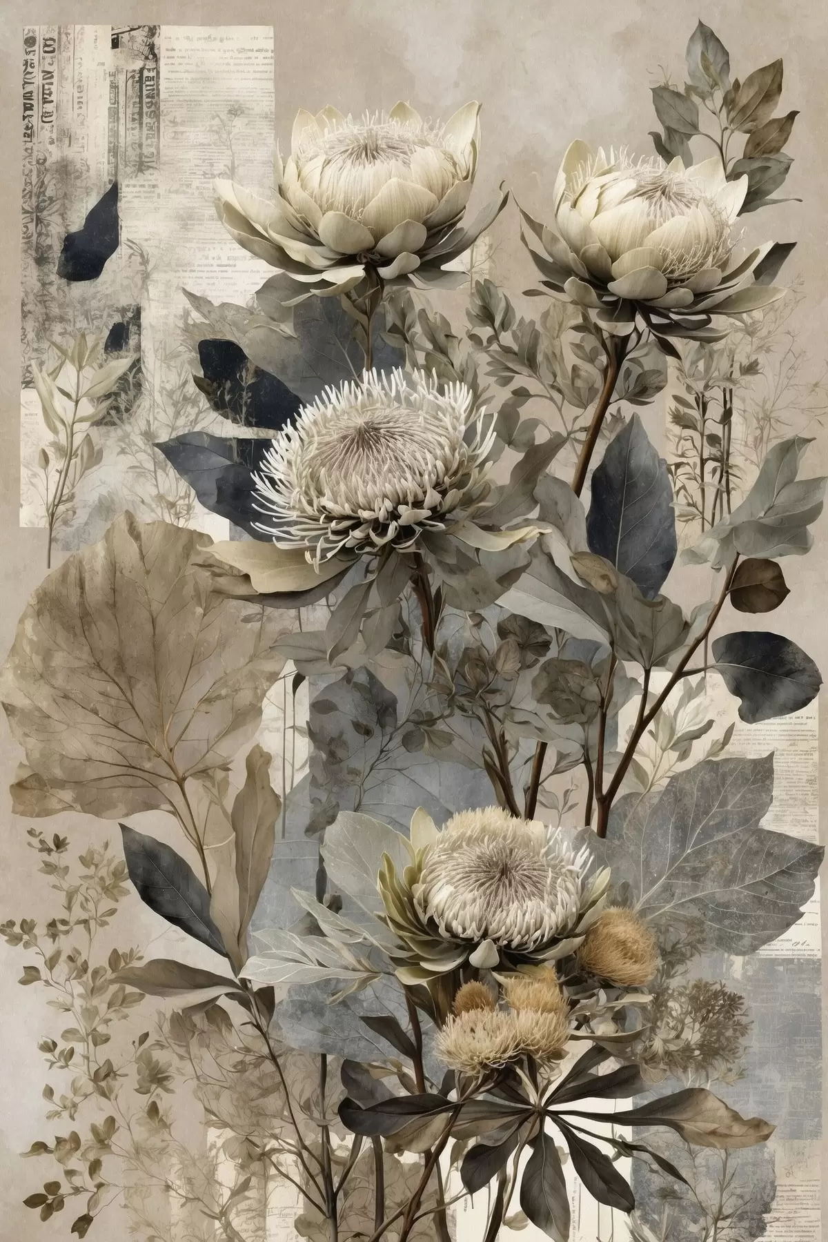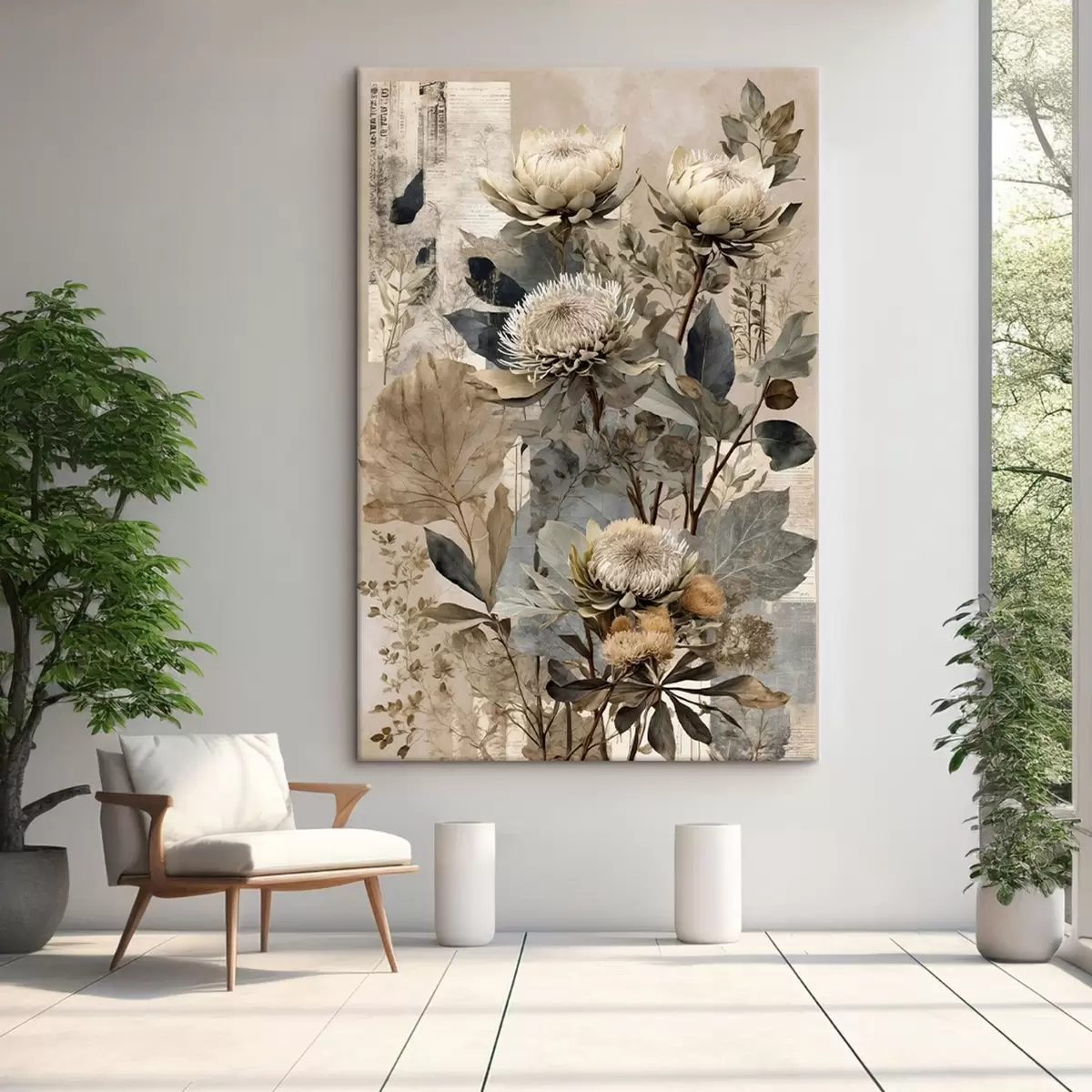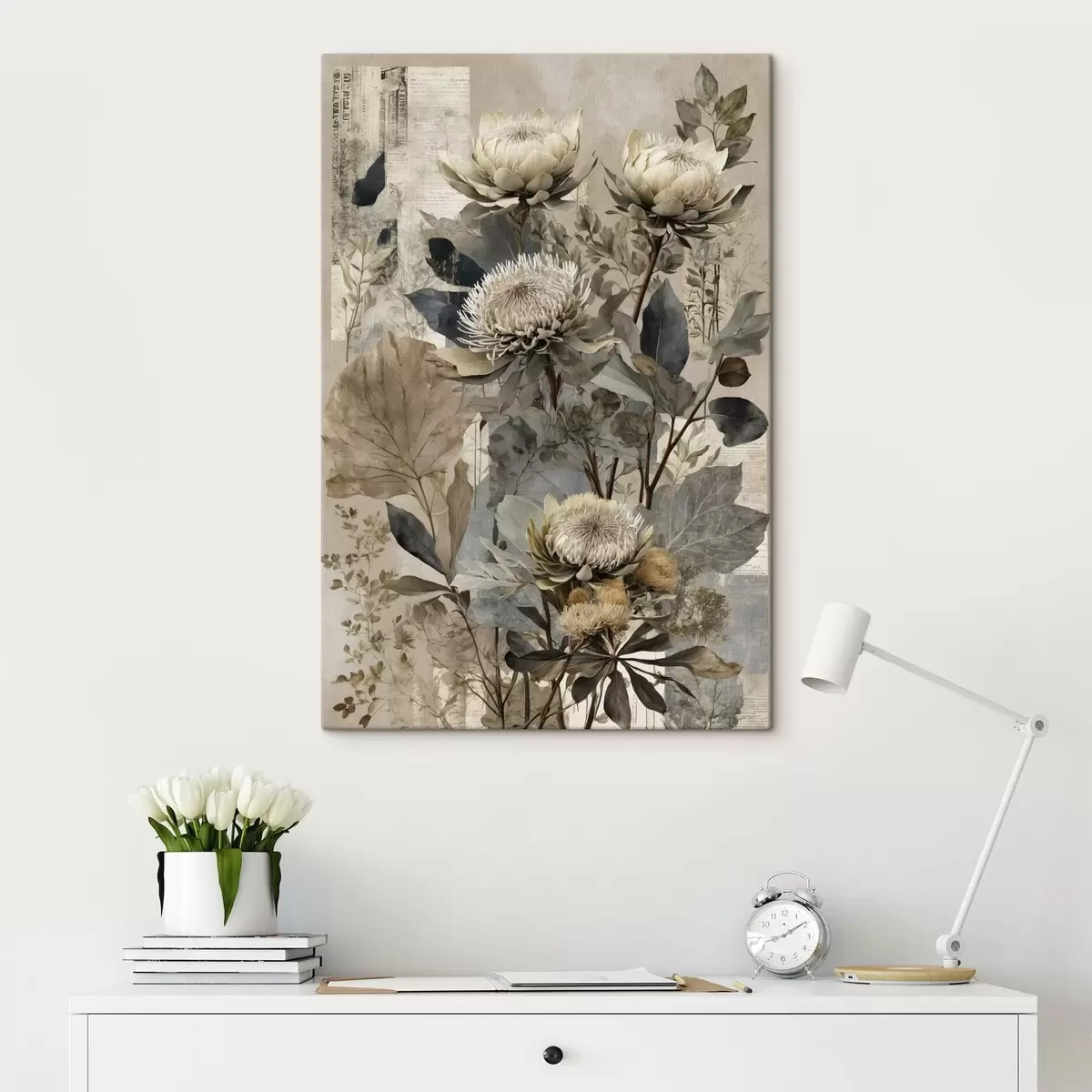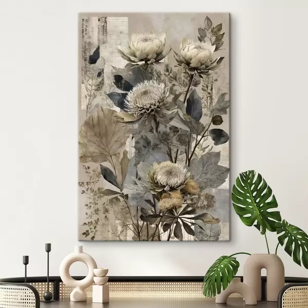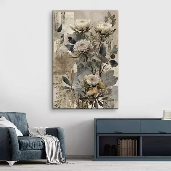 Pictură pe pânză Compoziție botanică în paletă de culori discrete Nr s47755