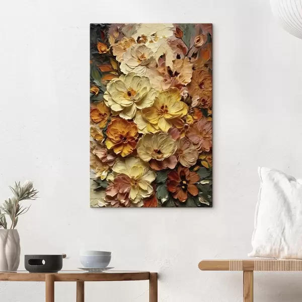 Pictură pe pânză Compoziție luxuriantă de flori vibrante în nuanțe calde Nr s47760