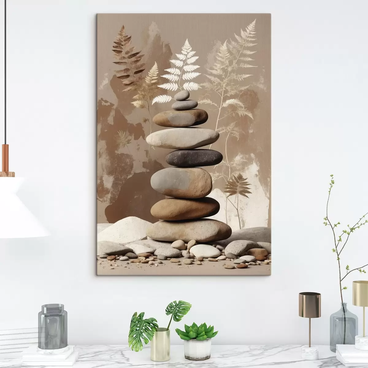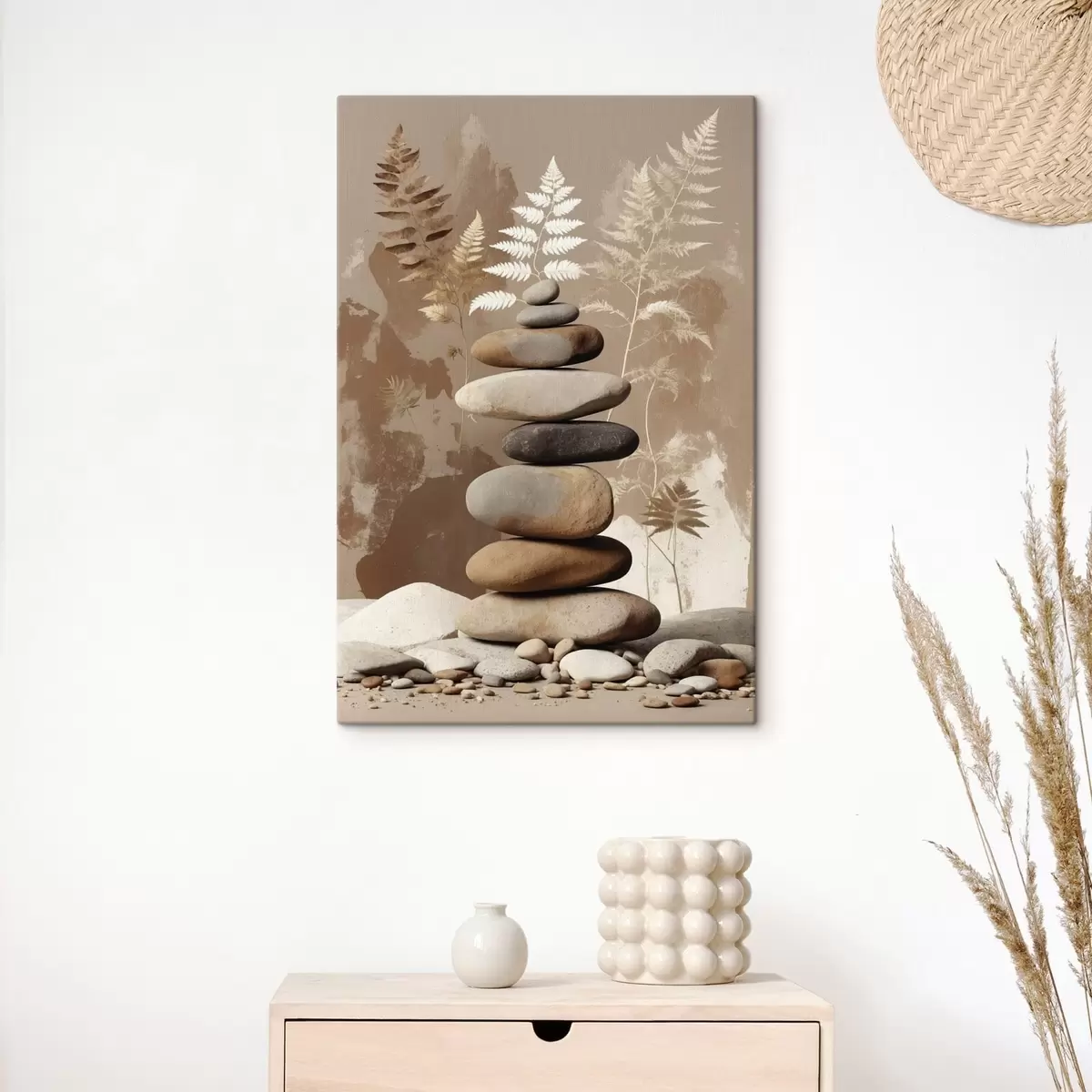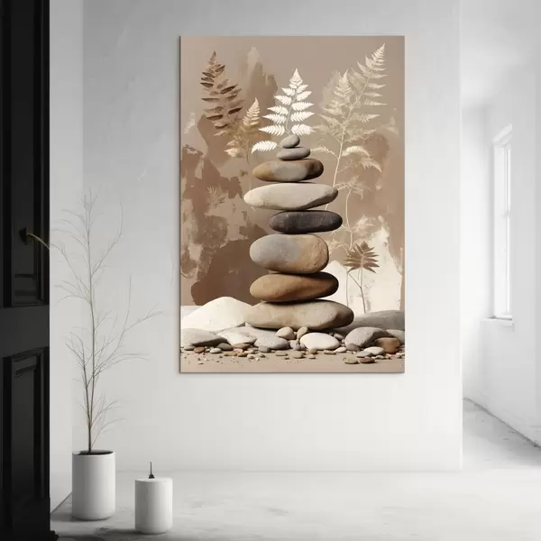 Tablouri Stivă de pietre netede cu fundal botanic s47764