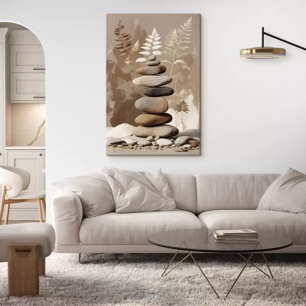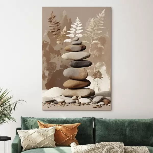 Pictură pe pânză Stivă de pietre netede cu fundal botanic Nr s47764