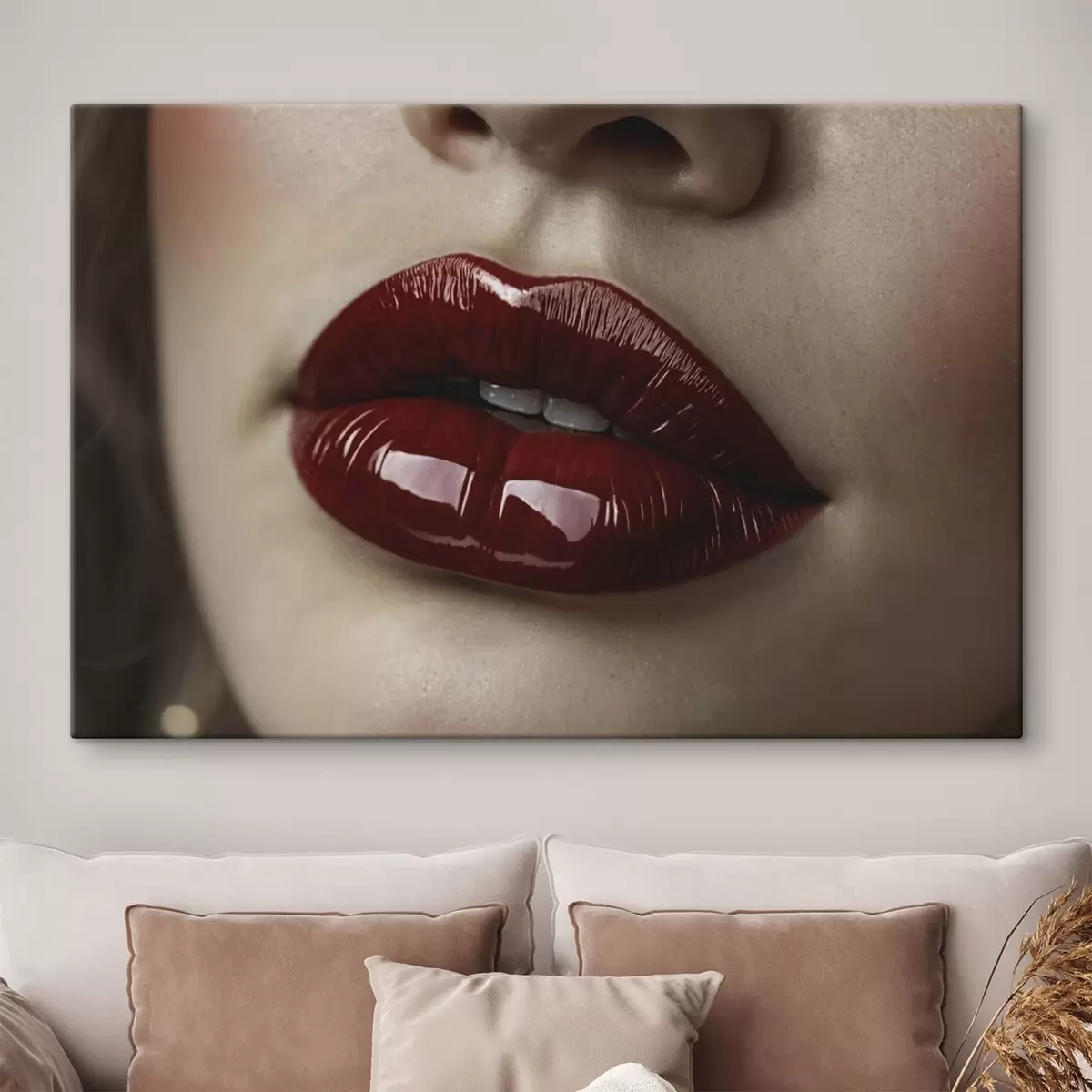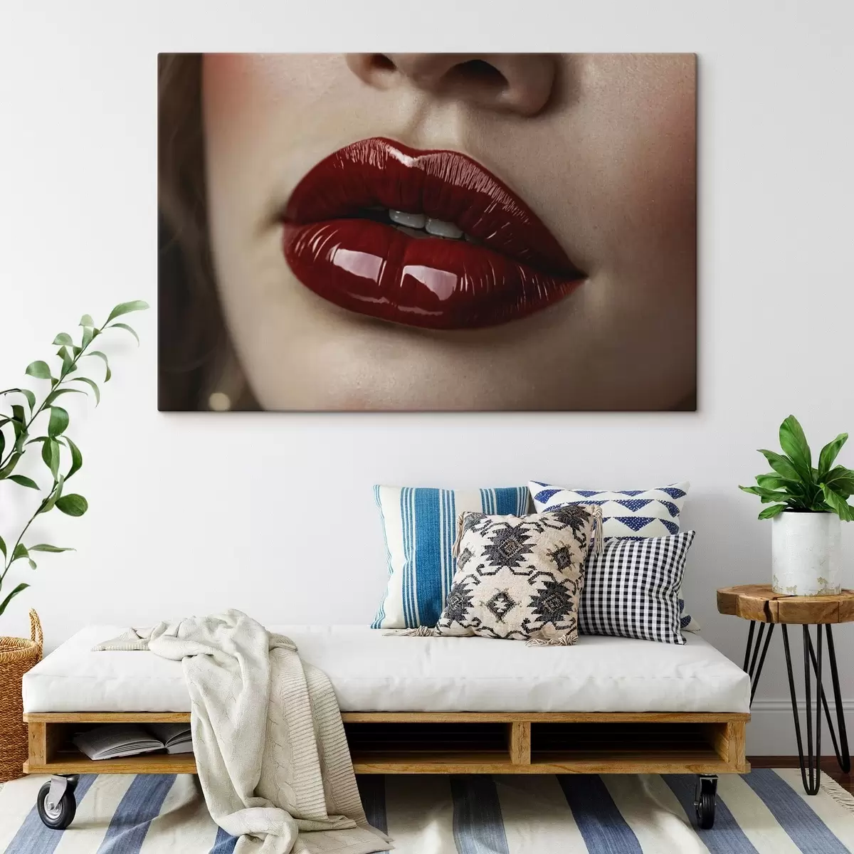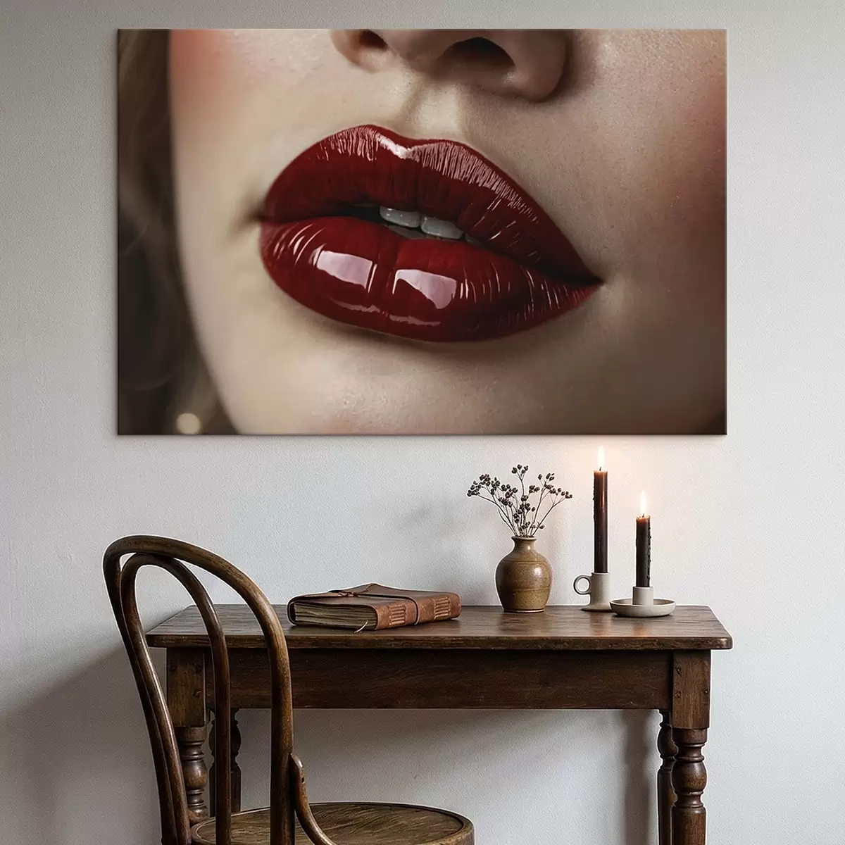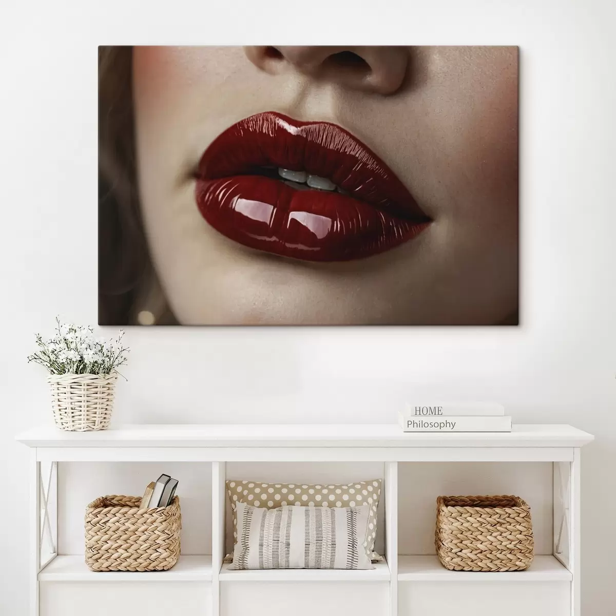 Pictură pe pânză Imagine foarte apropiată a buzelor roșii lucioase Nr s47772