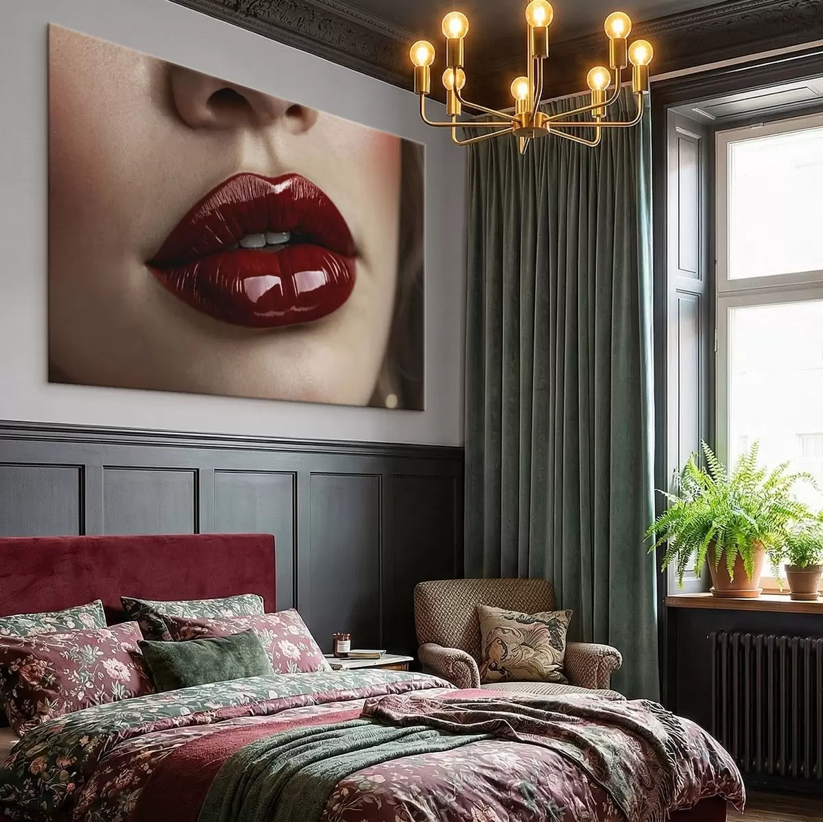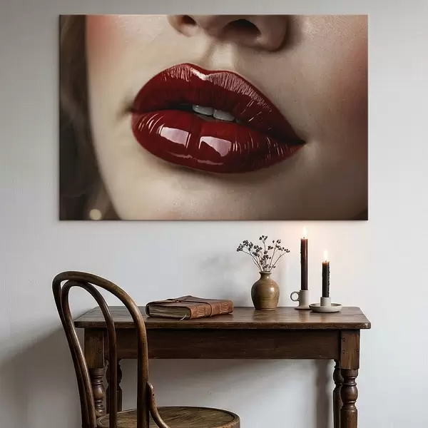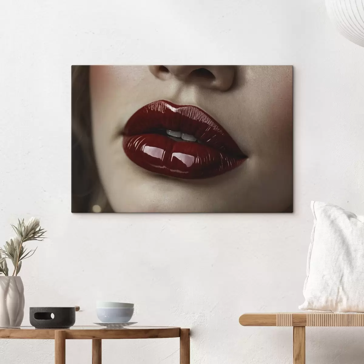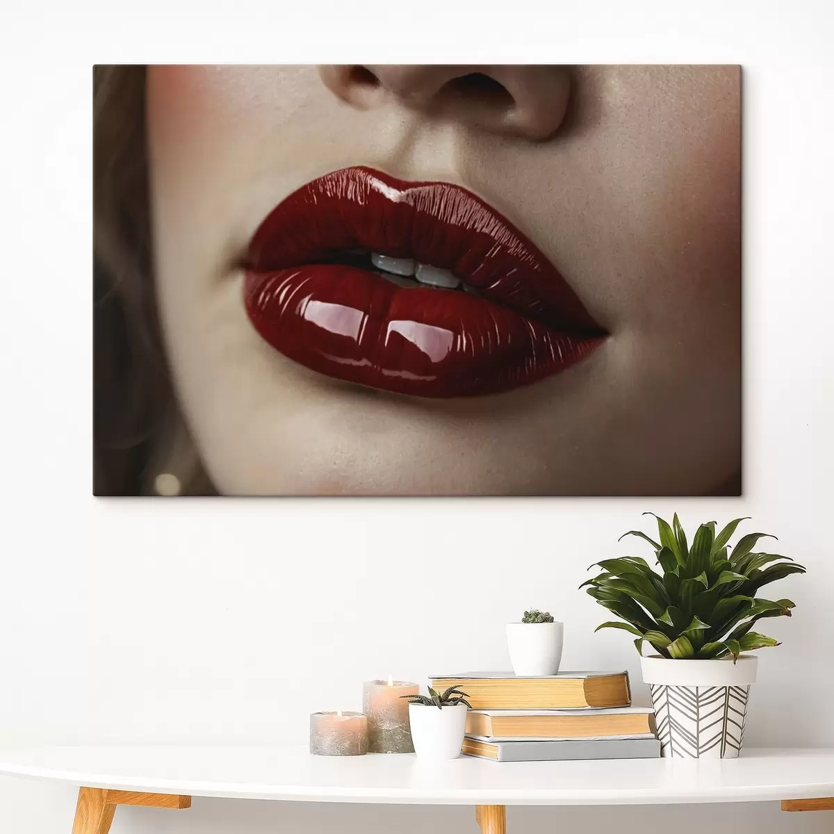 Pictură pe pânză Imagine foarte apropiată a buzelor roșii lucioase Nr s47772