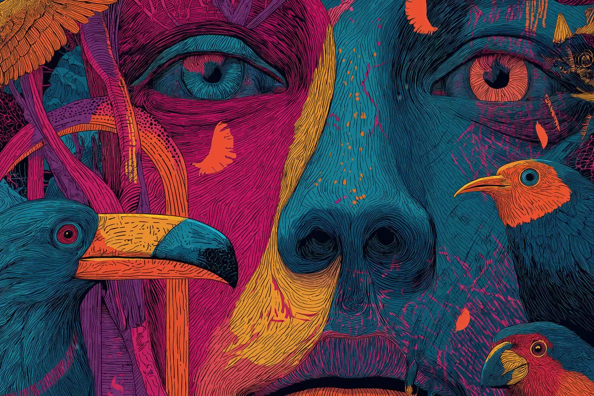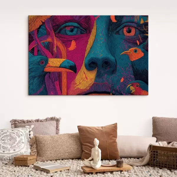 Pictură pe pânză Portret psihedelic cu păsări Nr s47789