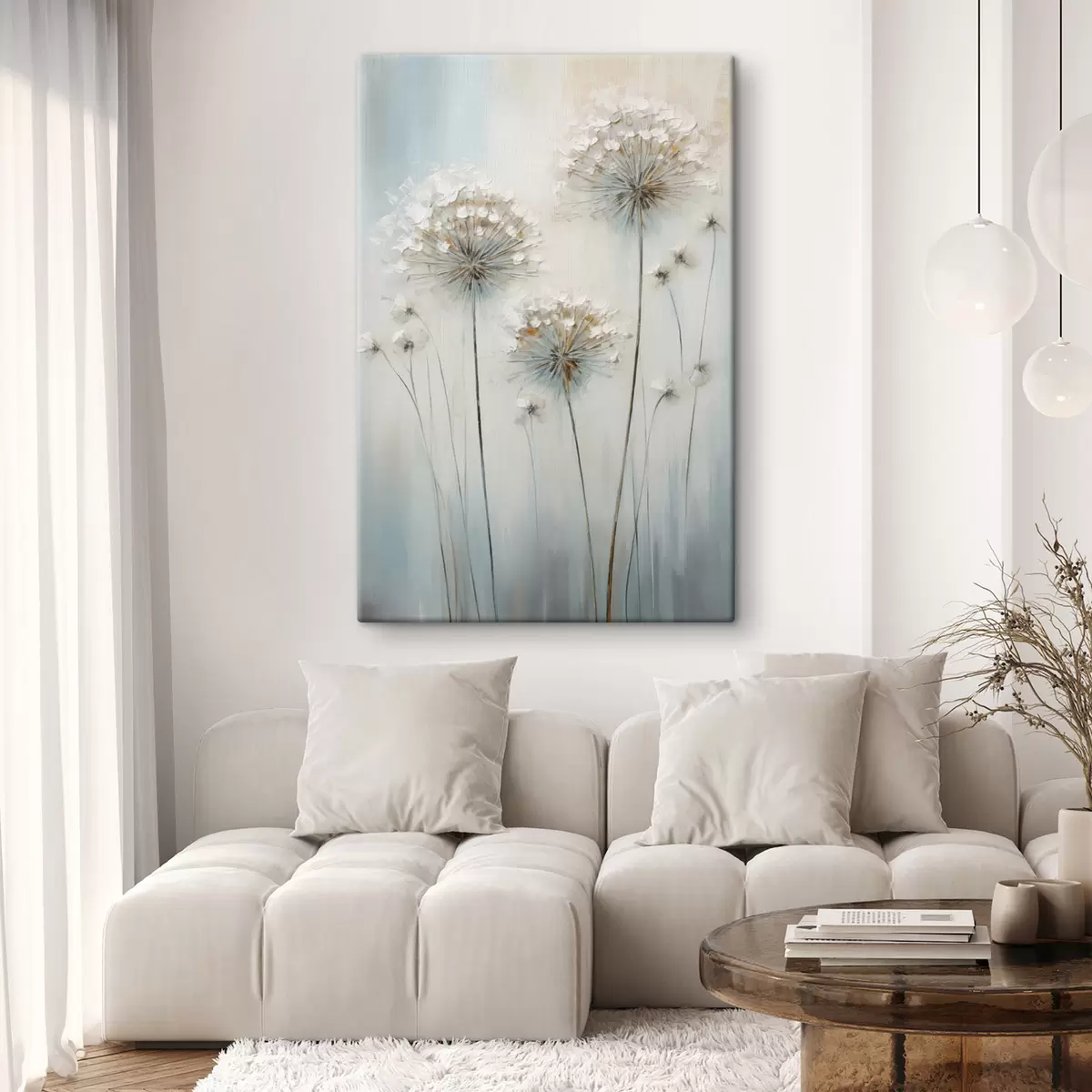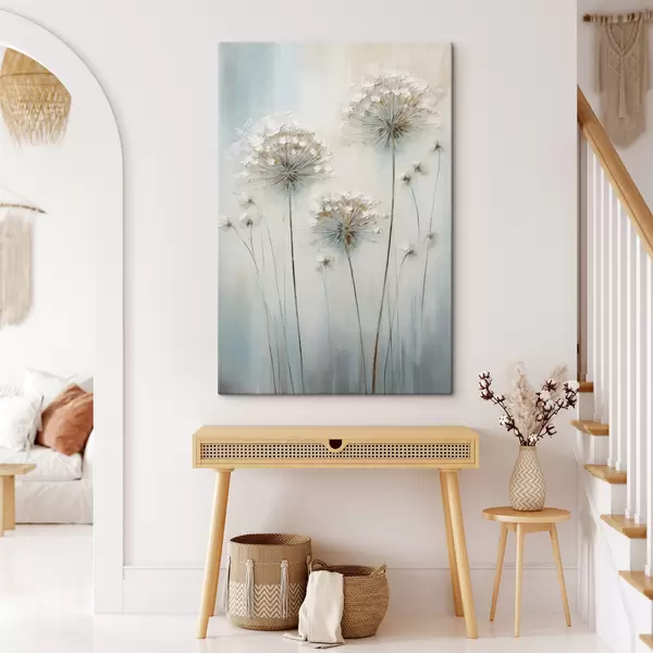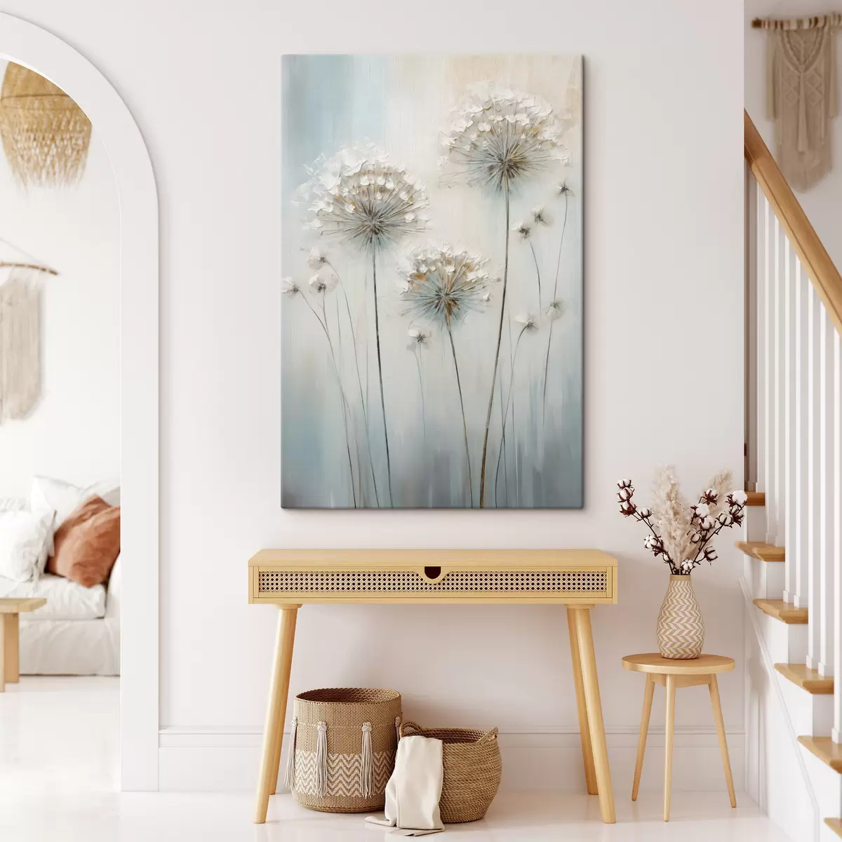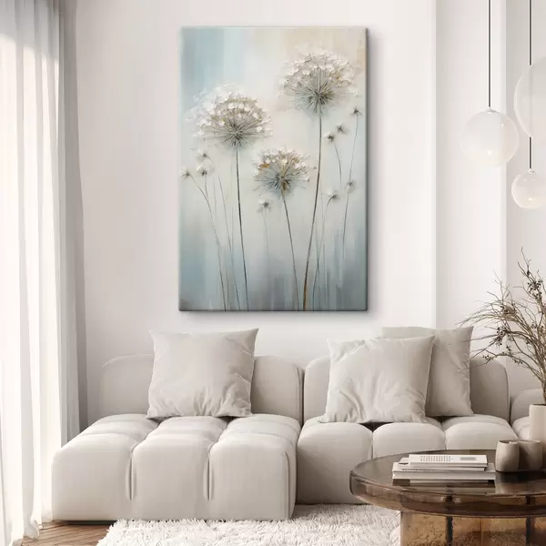 Tablouri Stil de pictură texturat cu păpădii pe un fundal albastru și alb delicat s47855