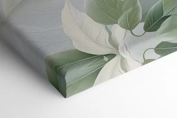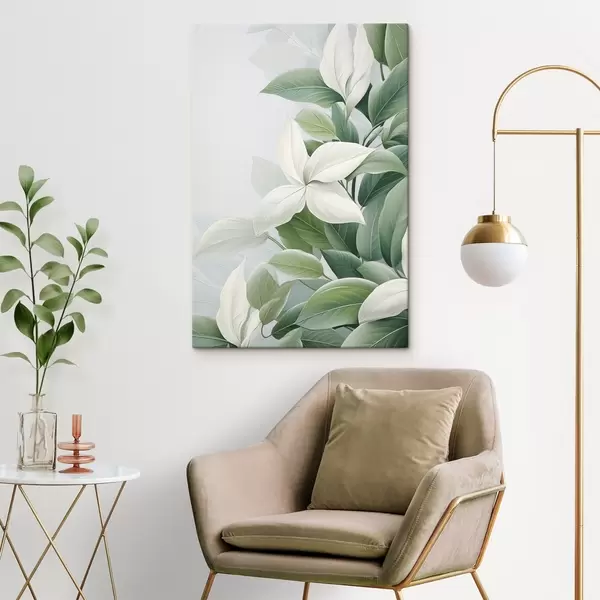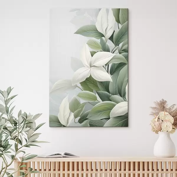 Pictură pe pânză Flori albe cu frunze verzi, fundal pastelat Nr s47870