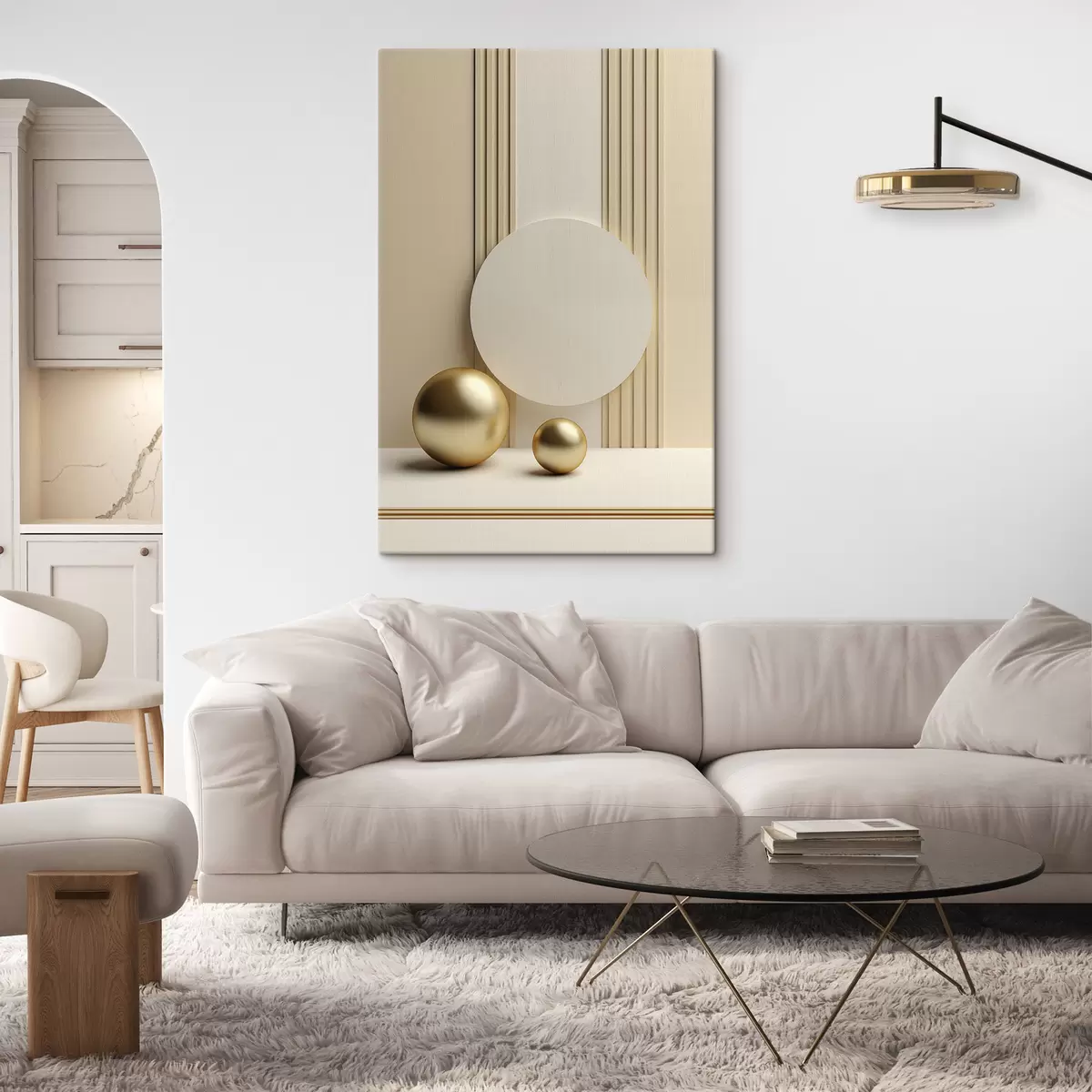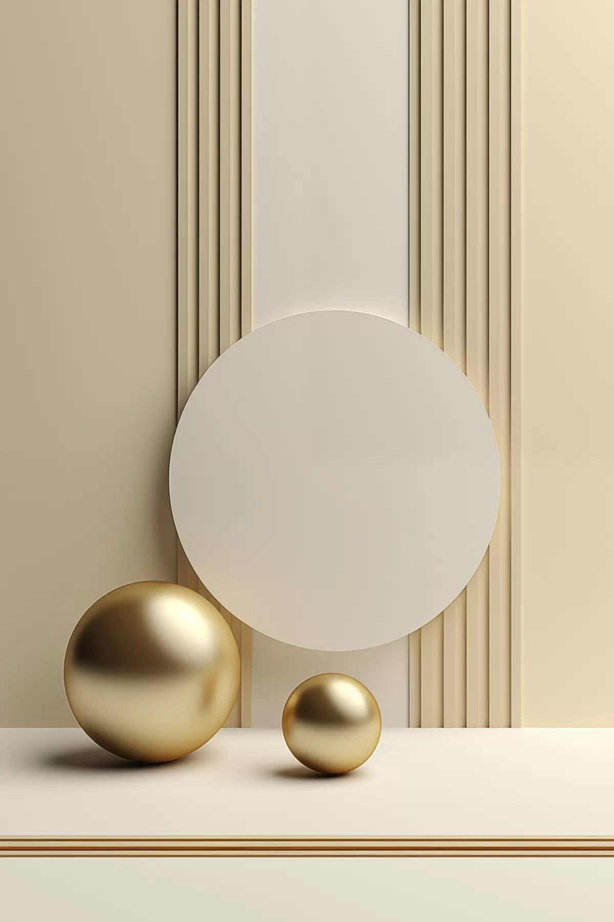 Tablouri Artă modernă abstractă în nuanțe de bej, cu linii verticale și sfere s47872