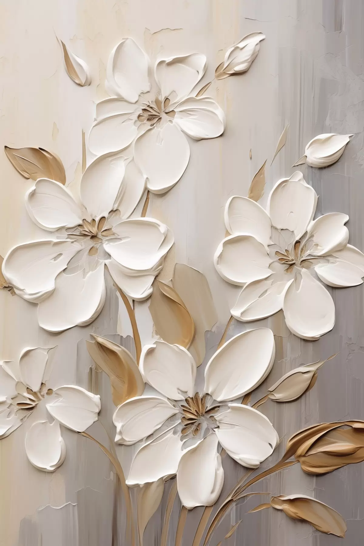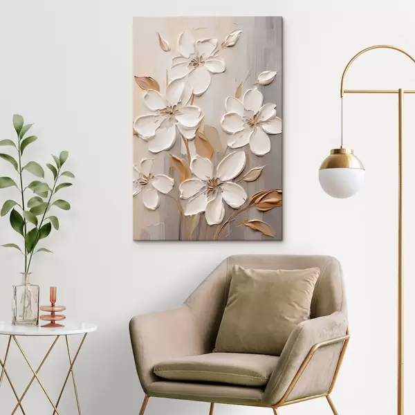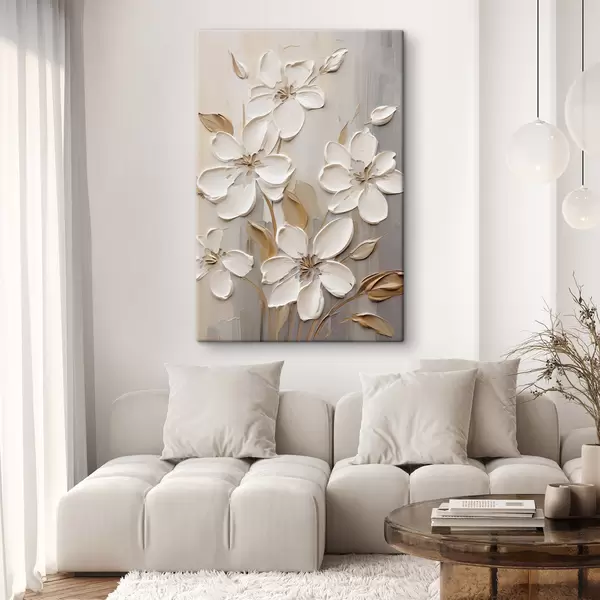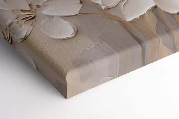 Pictură pe pânză Flori albe abstracte cu petale texturate, pe un fundal neutru cu imitații subtile de pensule Nr s47874