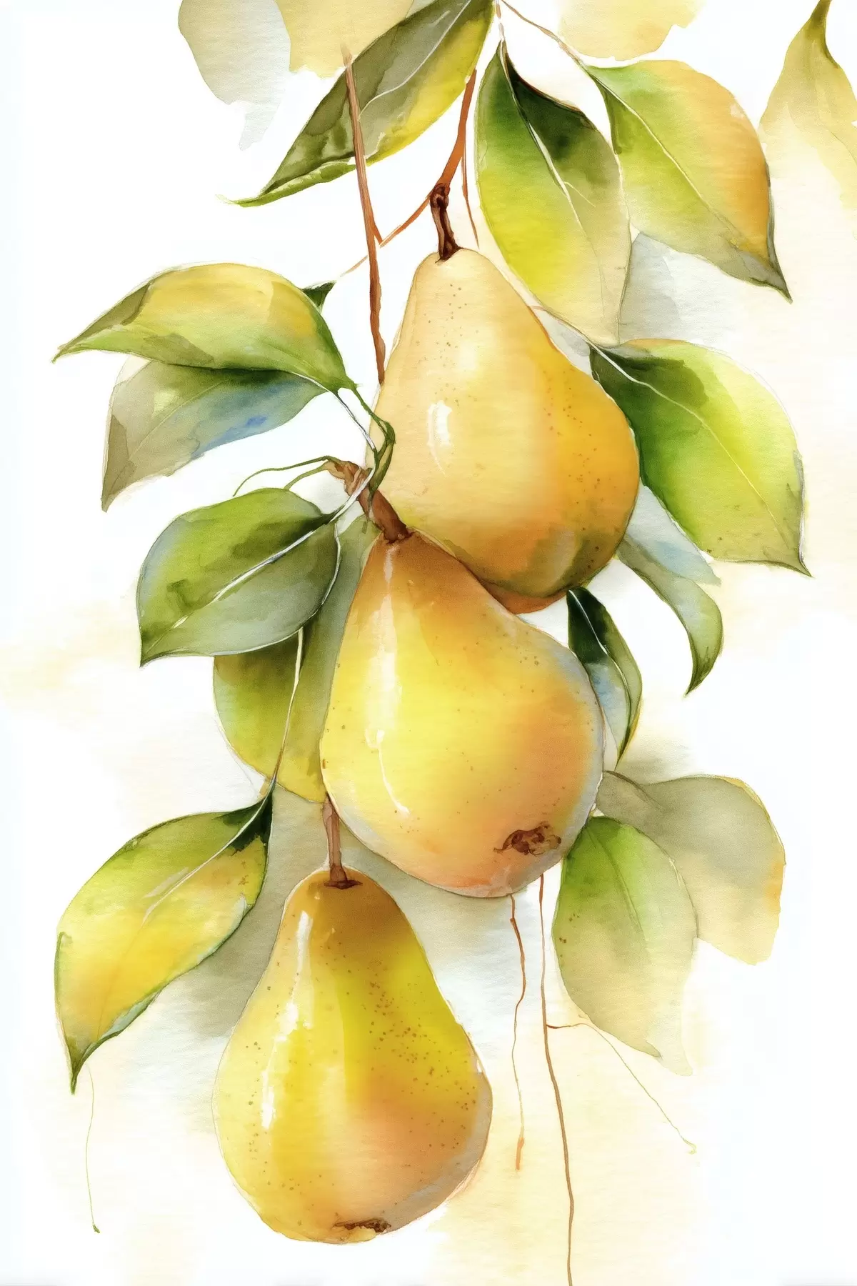 Tablouri pere galbene suculente în stil acuarelă s47931