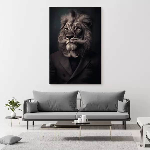 Pictură pe pânză leu cu barbă în stil frizerie Nr s47947