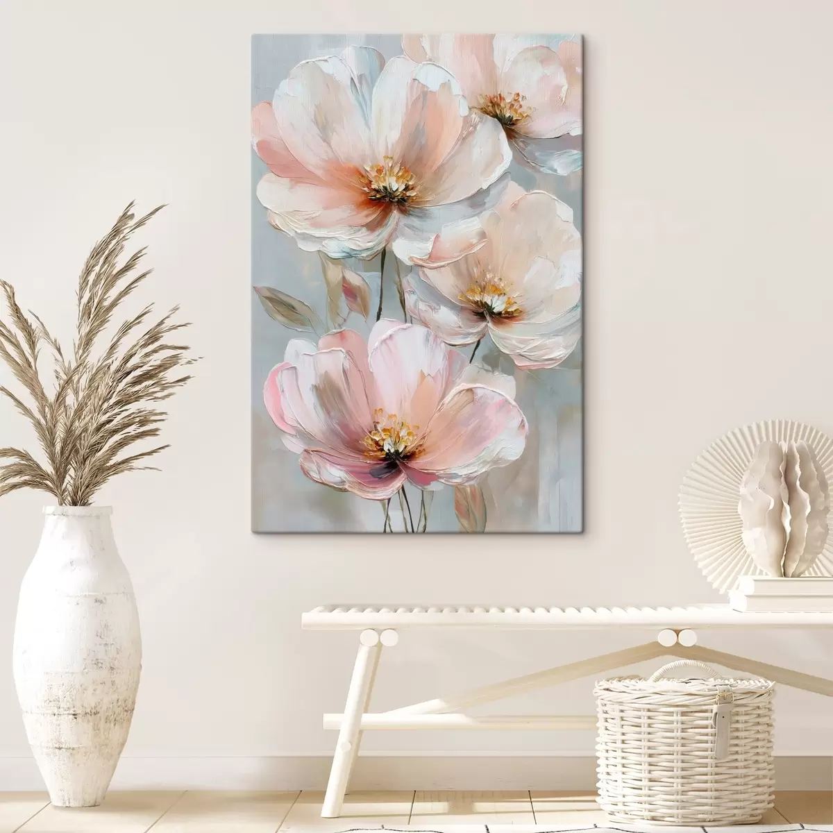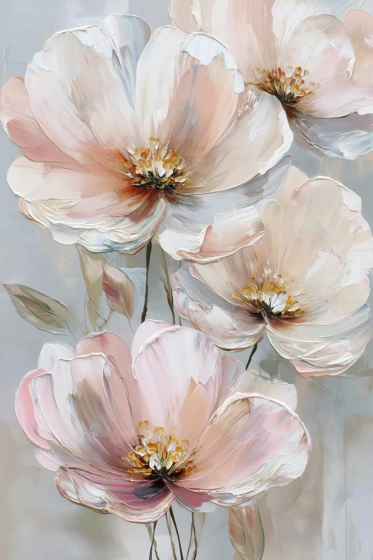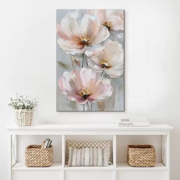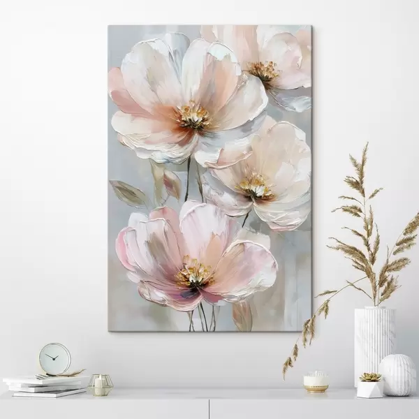 Tablouri Flori alb-roz cu tușe expresive în stilul picturii în ulei s47962