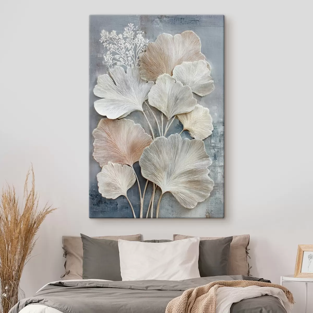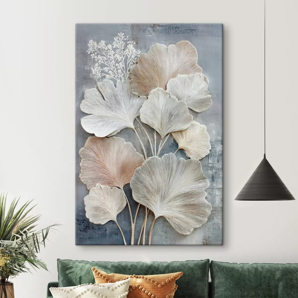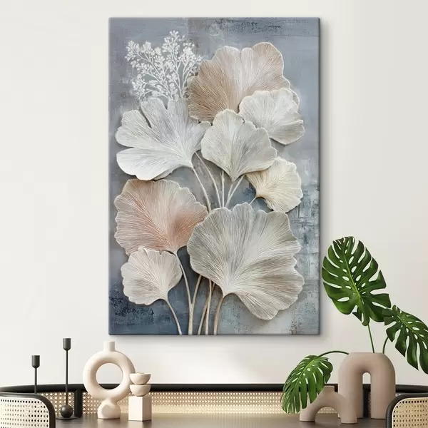 Pictură pe pânză Compoziție florală abstractă într-o paletă de culori bej-albastru Nr s47963