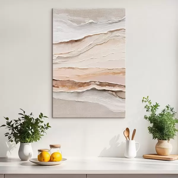 Pictură pe pânză Compoziție stratificată în tonuri nisipii și crem Nr s47966