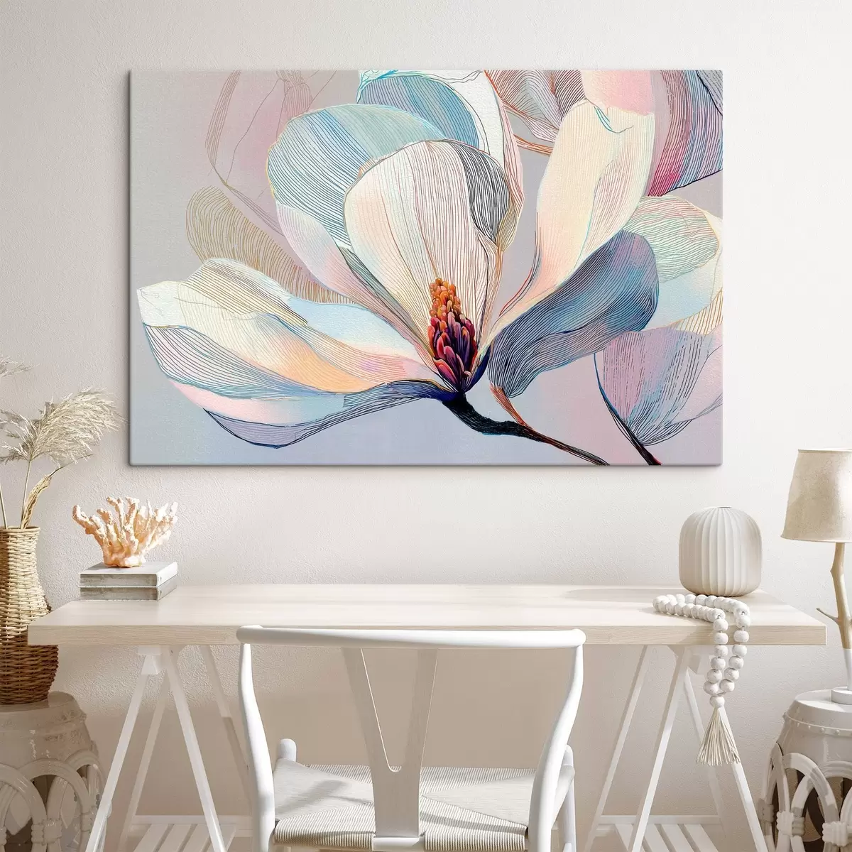 Tablouri Magnolie delicată în tonuri de albastru-roz s47967