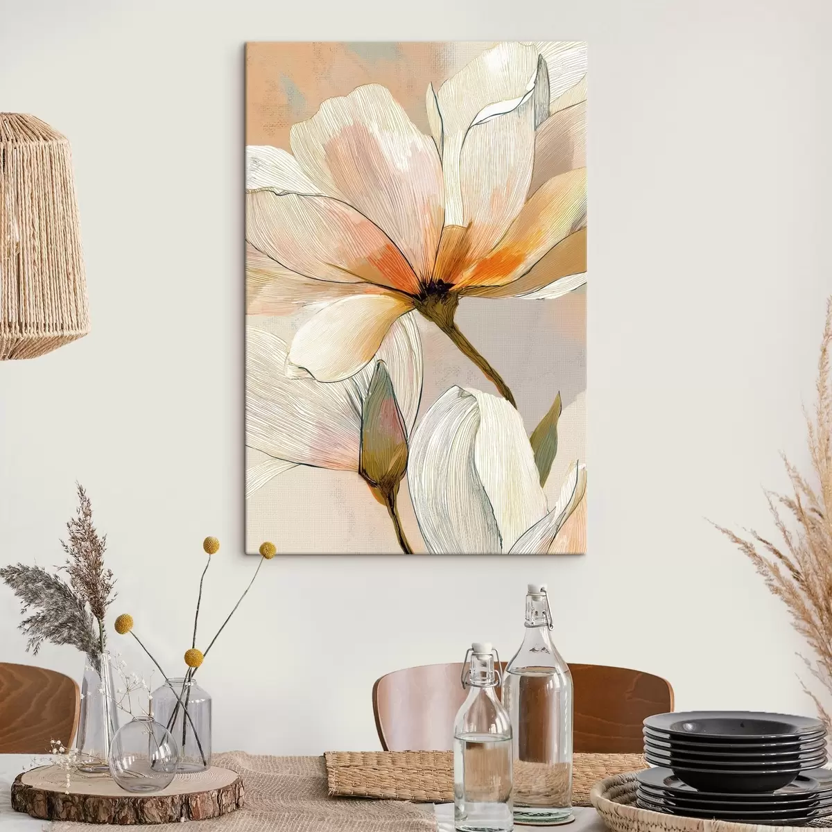 Tablouri Compoziție florală în tonuri de piersică și albastru s47969