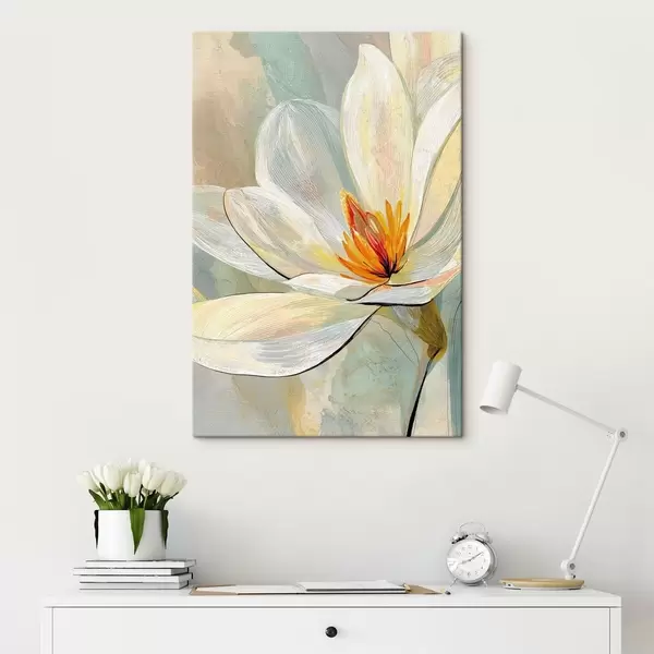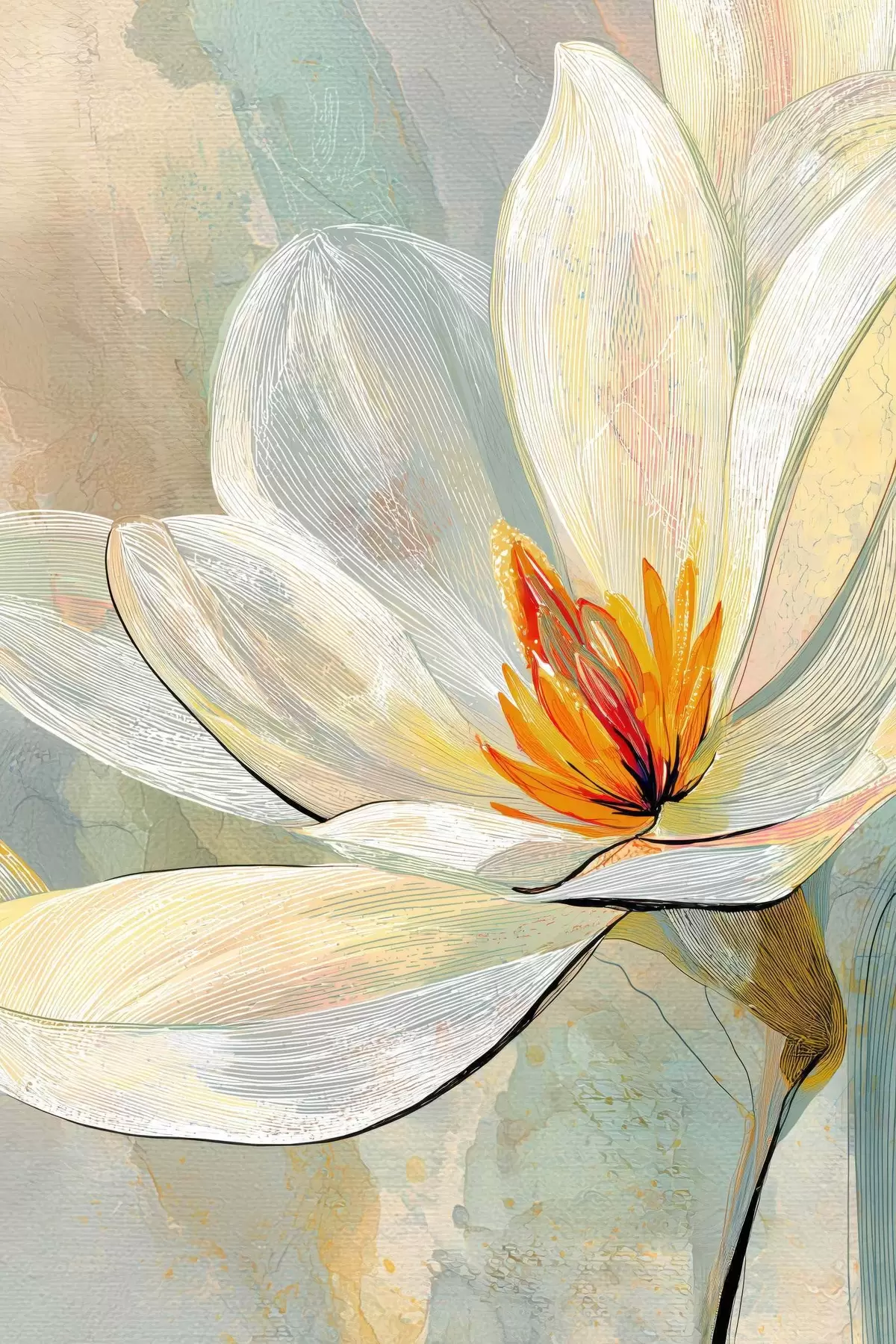 Pictură pe pânză Magnolii abstracte într-o paletă pastelată, cu accent pe grafica liniară Nr s47970