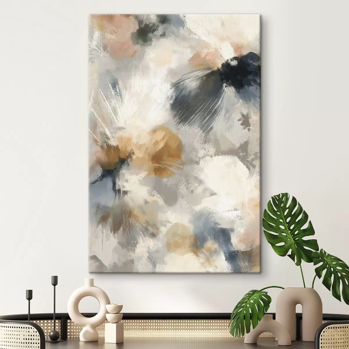 Pictură pe pânză Compoziție artistică cu flori mari și grafice liniare Nr s47971
