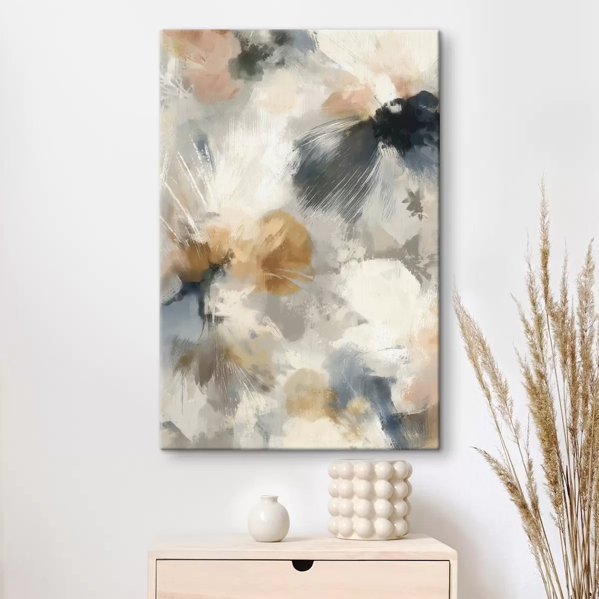 Tablouri Compoziție artistică cu flori mari și grafice liniare s47971