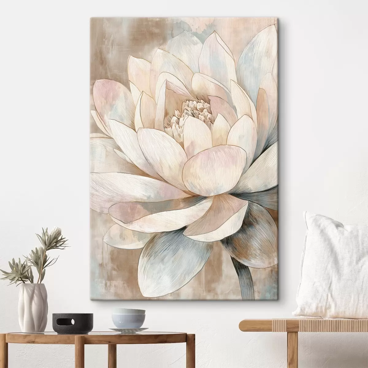 Tablouri Lotus mare în tonuri pastelate, în stil minimalist s47973