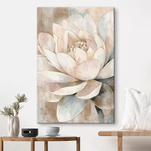 Pictură pe pânză Lotus mare în tonuri pastelate, în stil minimalist Nr s47973