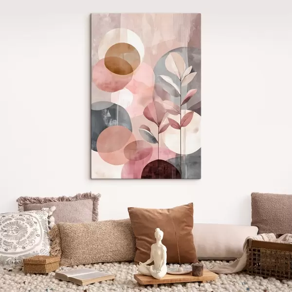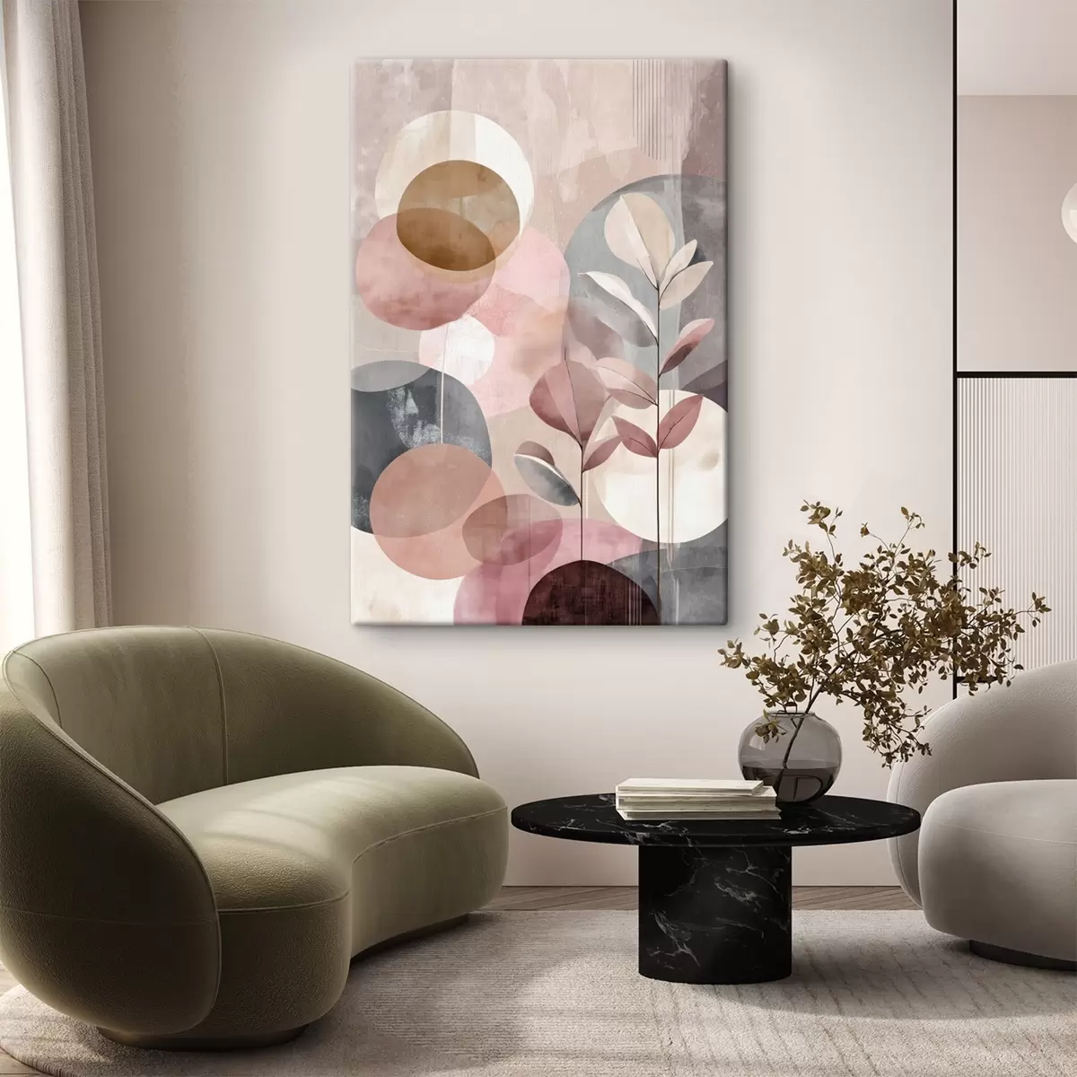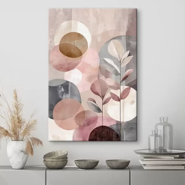 Tablouri Compoziție abstractă cu cercuri într-o paletă de culori teracotă-roz s47977