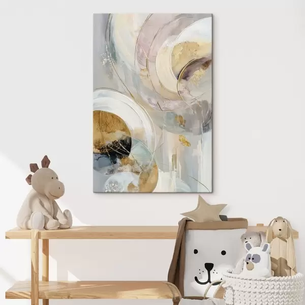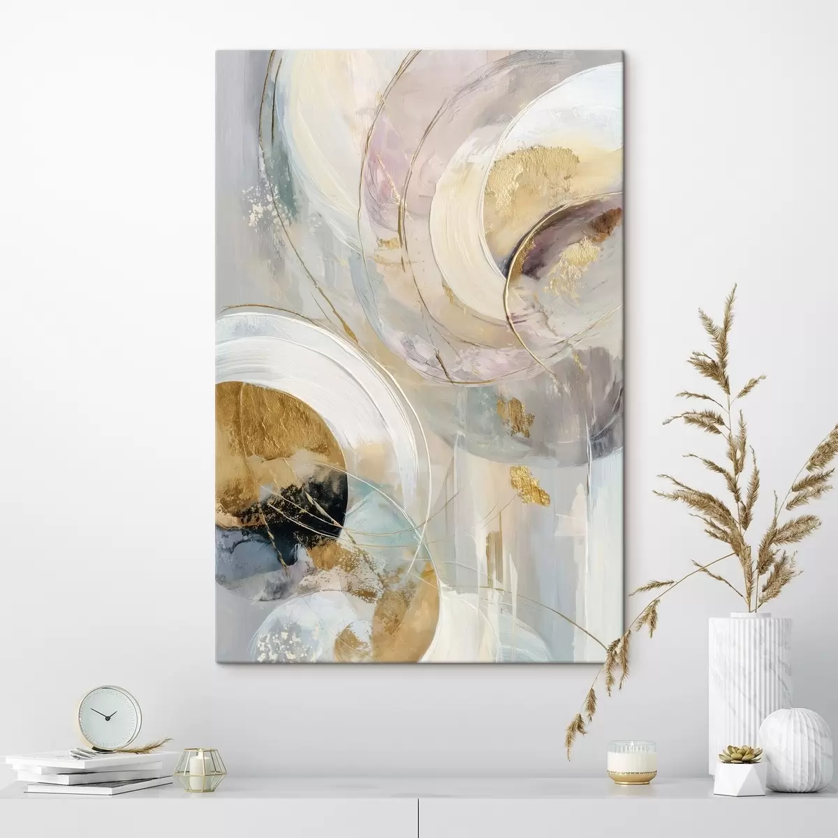 Pictură pe pânză Compoziție cu elemente circulare stratificate și tușe de vopsea Nr s47983