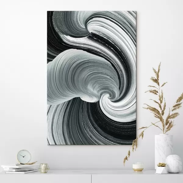 Tablouri Energia mișcării: abstract alb-negru în stilul picturii în ulei s47990