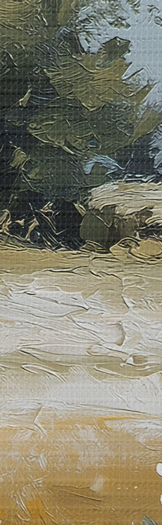Țesătura fină a firelor de pe această pânză seamănă cu suprafața pânzelor artiștilor profesioniști.