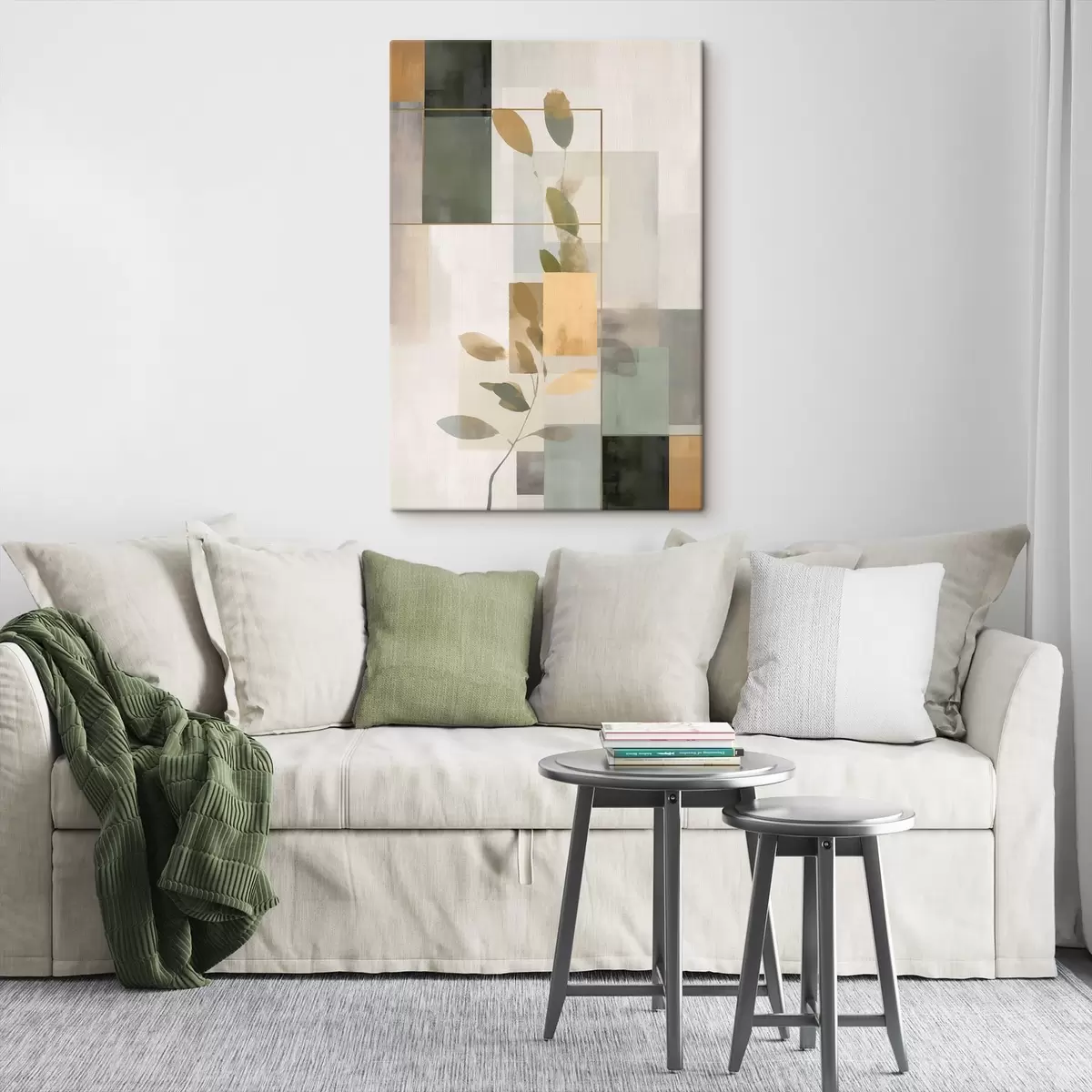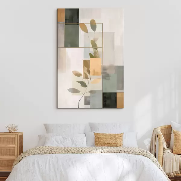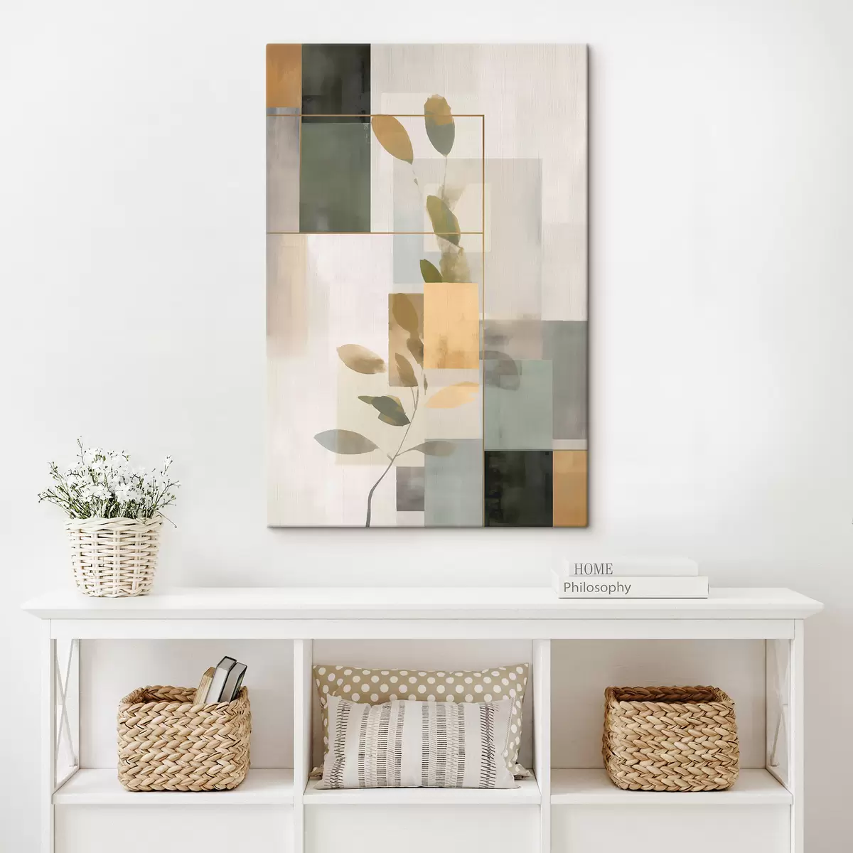 Pictură pe pânză Abstracție geometrică cu ramuri de frunze Nr s48020
