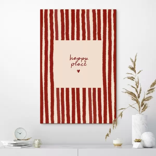 Pictură pe pânză Dungi roșii cu textul „happy place” Nr s48025