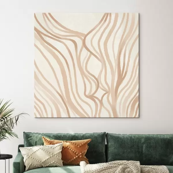 Pictură pe pânză Linii abstracte ondulate în nuanțe de bej Nr s48027