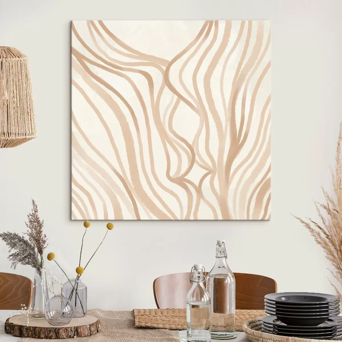 Tablouri Linii abstracte ondulate în nuanțe de bej s48027