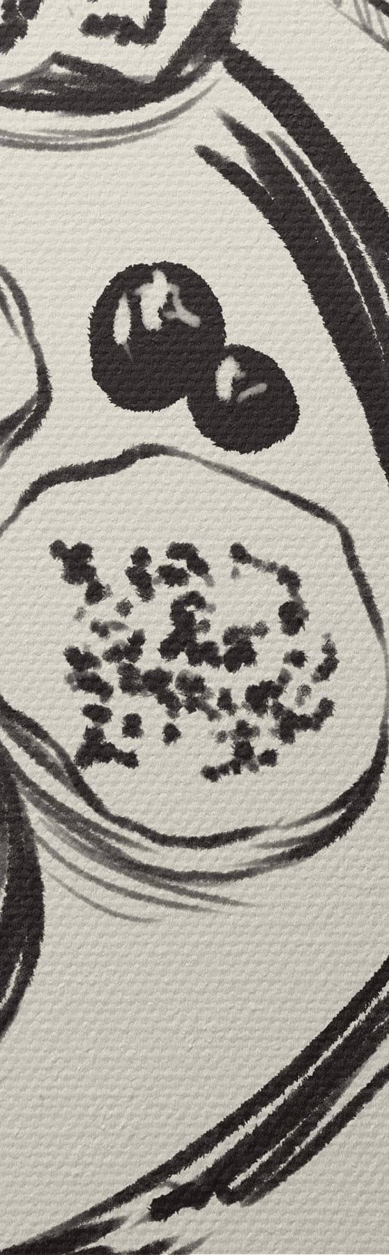 Tablouri Schiță în alb-negru reprezentând o masă cu fructe și un pahar s48030