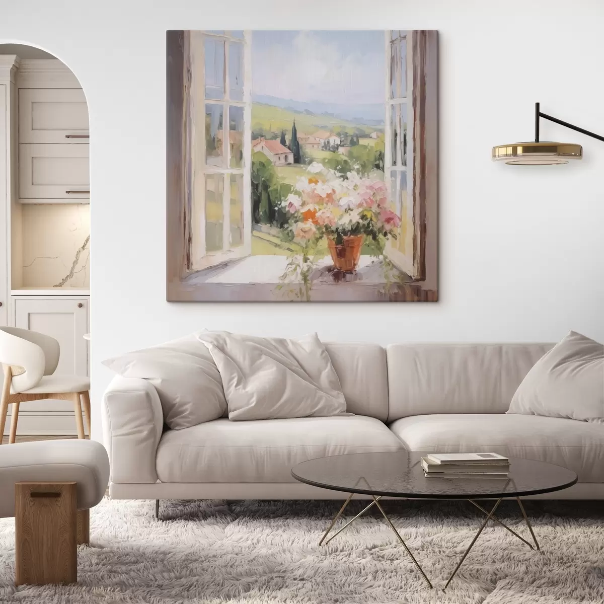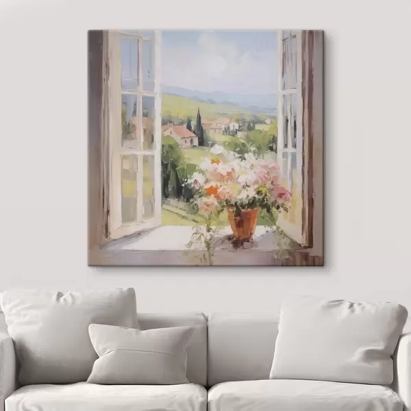 Pictură pe pânză Un buchet într-o vază lângă fereastră Nr s48052