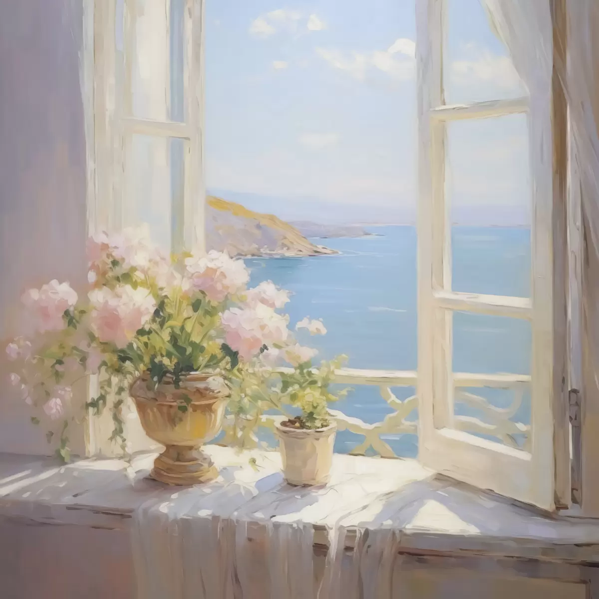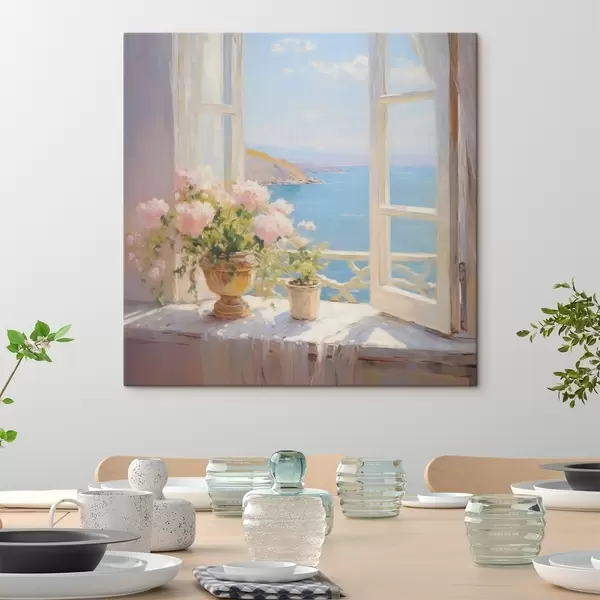 Pictură pe pânză Un buchet într-o vază lângă fereastră Nr s48053
