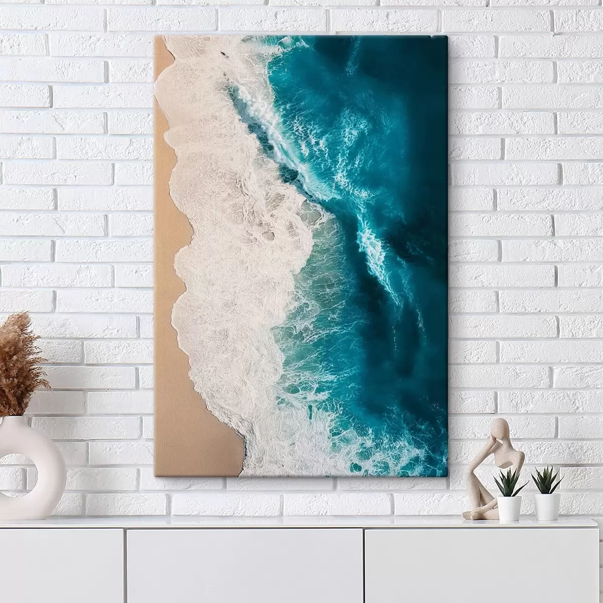 Pictură pe pânză vedere aeriană de sus a valurilor oceanului care se întâlnesc cu plaja nisipoasă Nr s48062