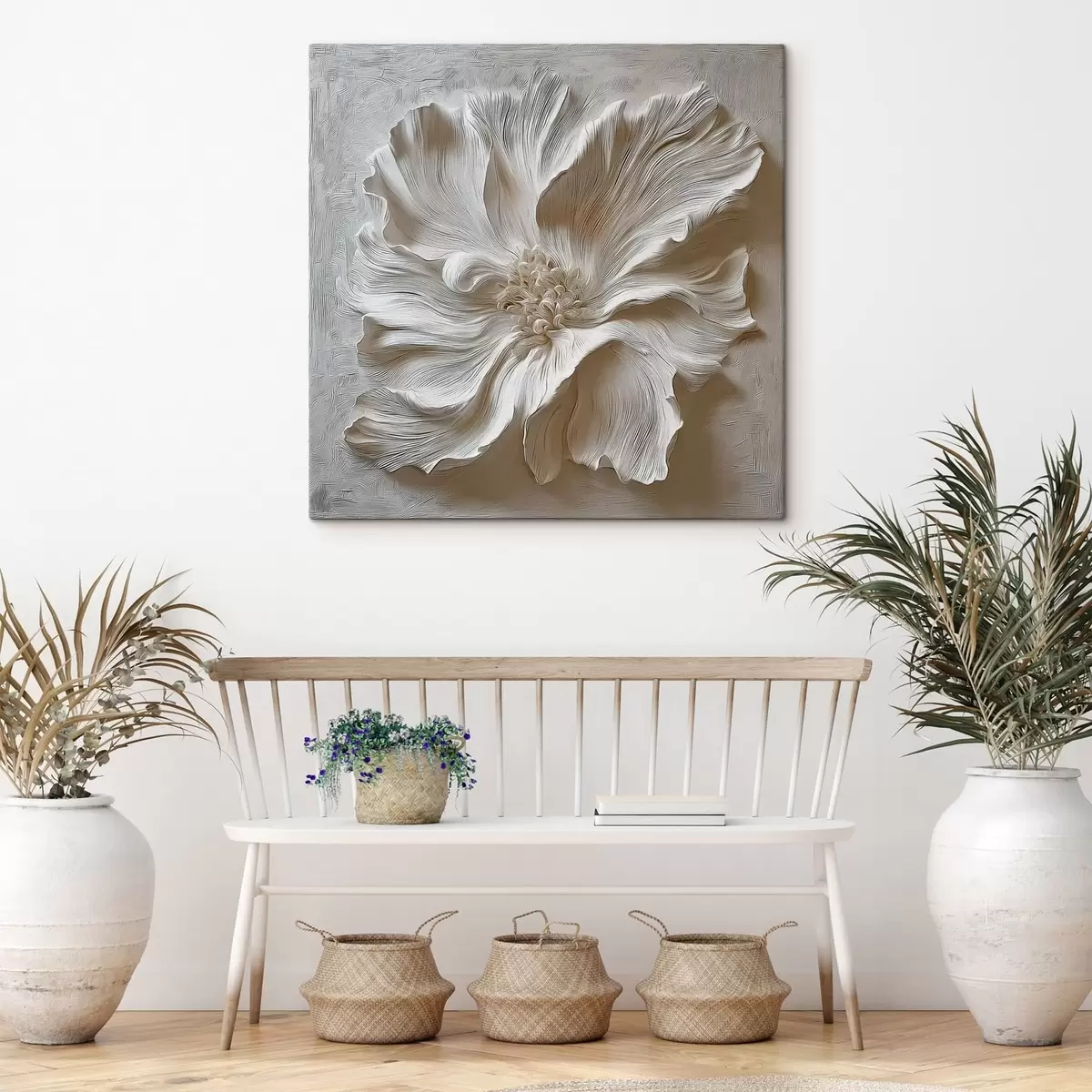 Pictură pe pânză sculptură florală în relief din ipsos alb Nr s48065