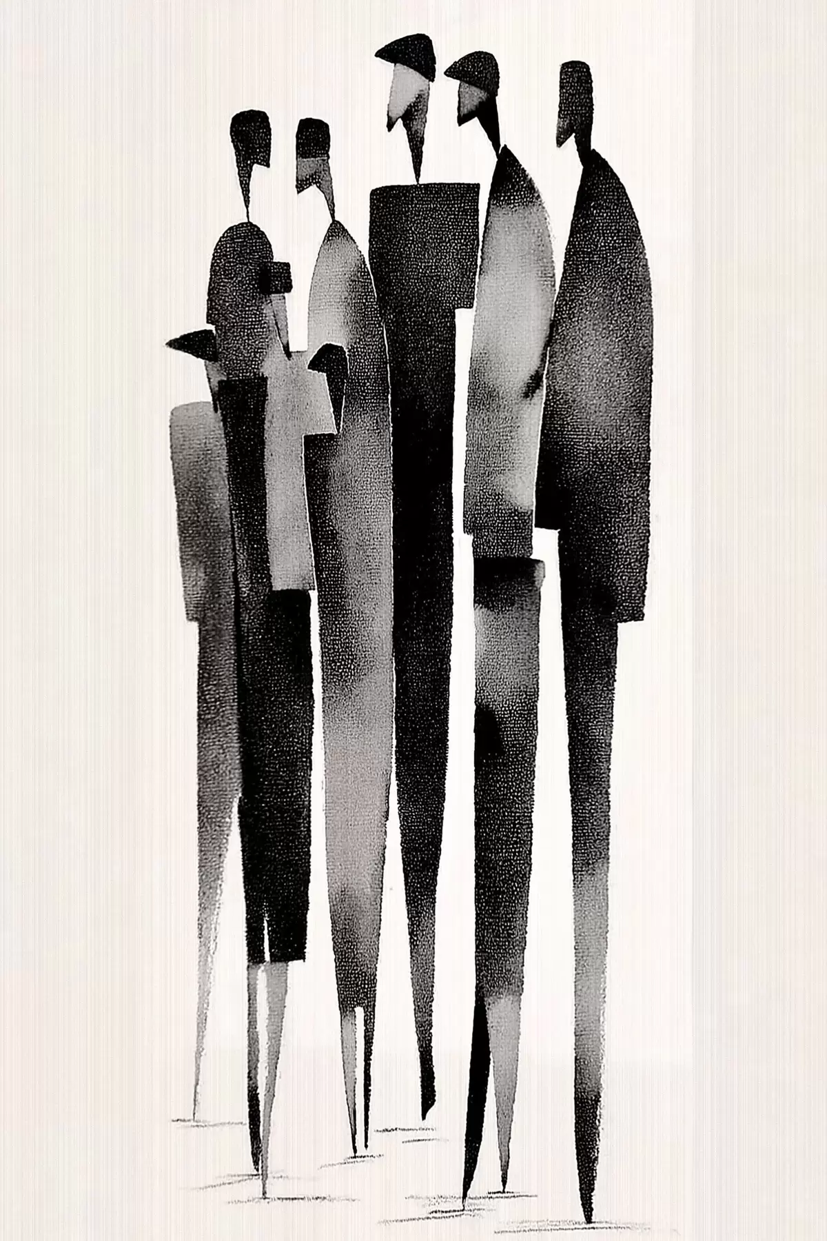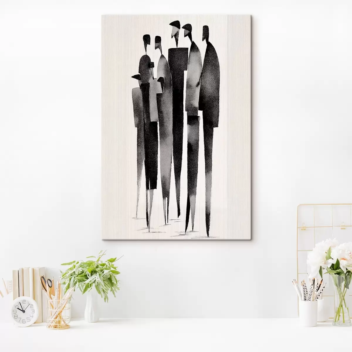 Pictură pe pânză figuri umane minimaliste, alungite, stând în șir Nr s48068