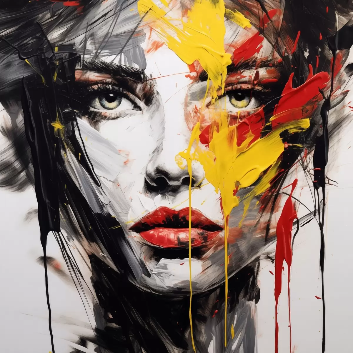 Tablouri Portret de femeie cu tușe de vopsea îndrăznețe s48088