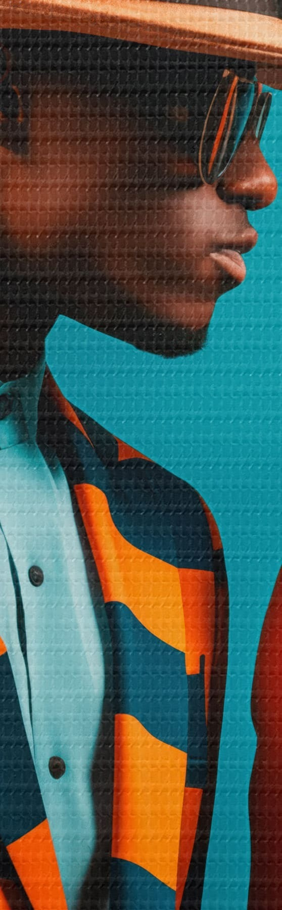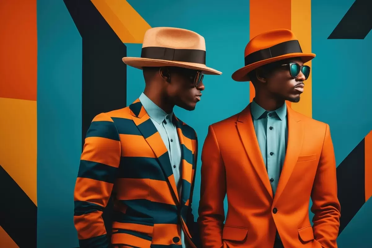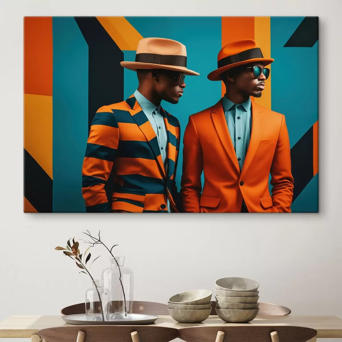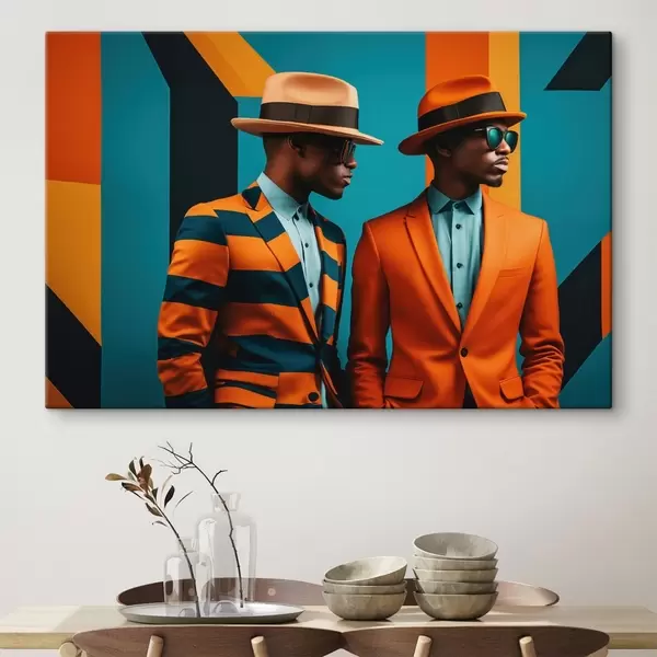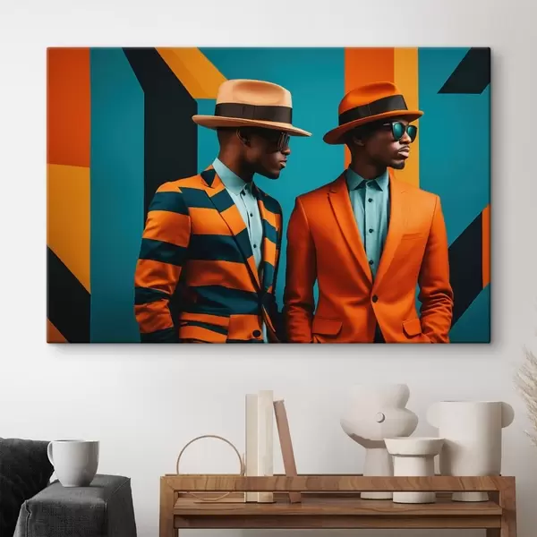 Pictură pe pânză Doi bărbați în costume și pălării strălucitoare Nr s48091
