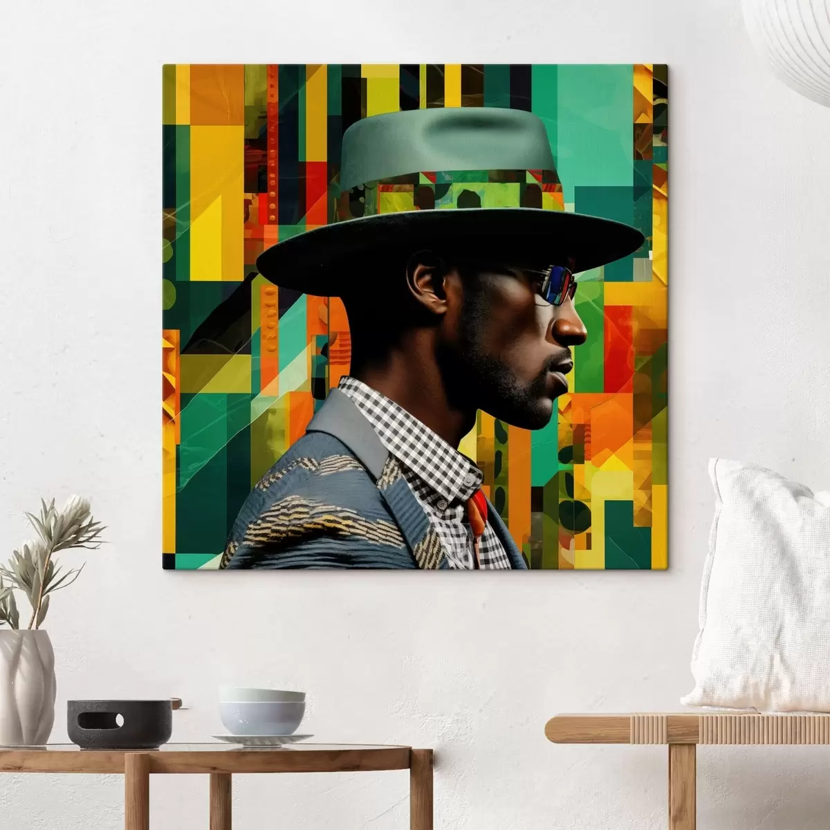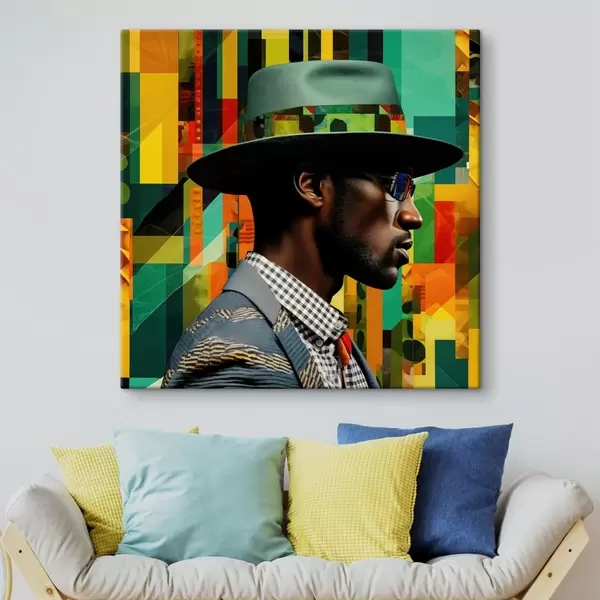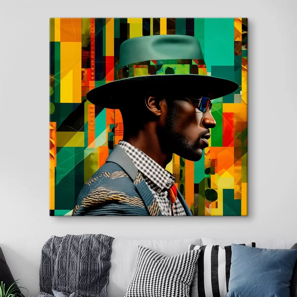 Tablouri Portretul unui bărbat cu pălărie pe un fundal vibrant s48100