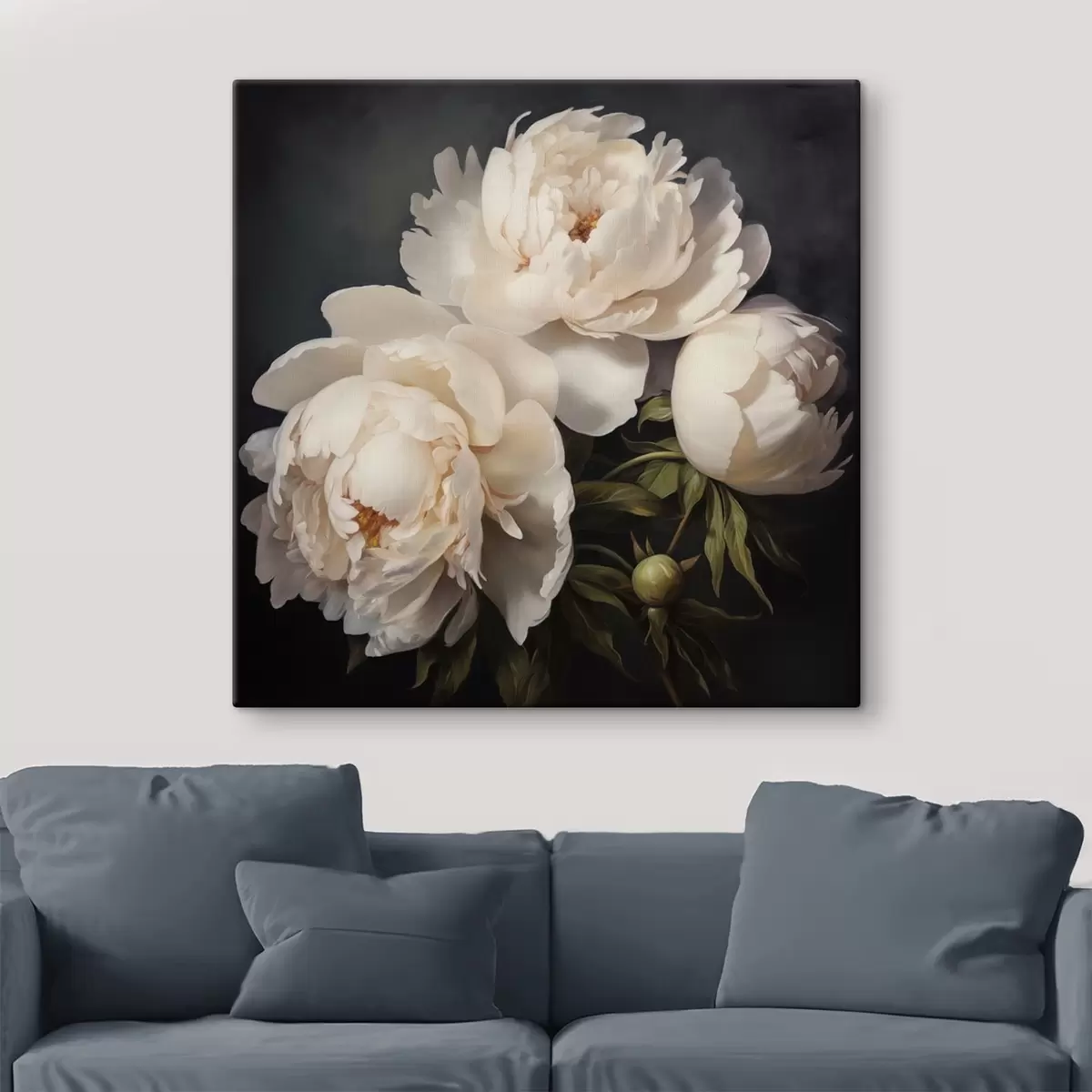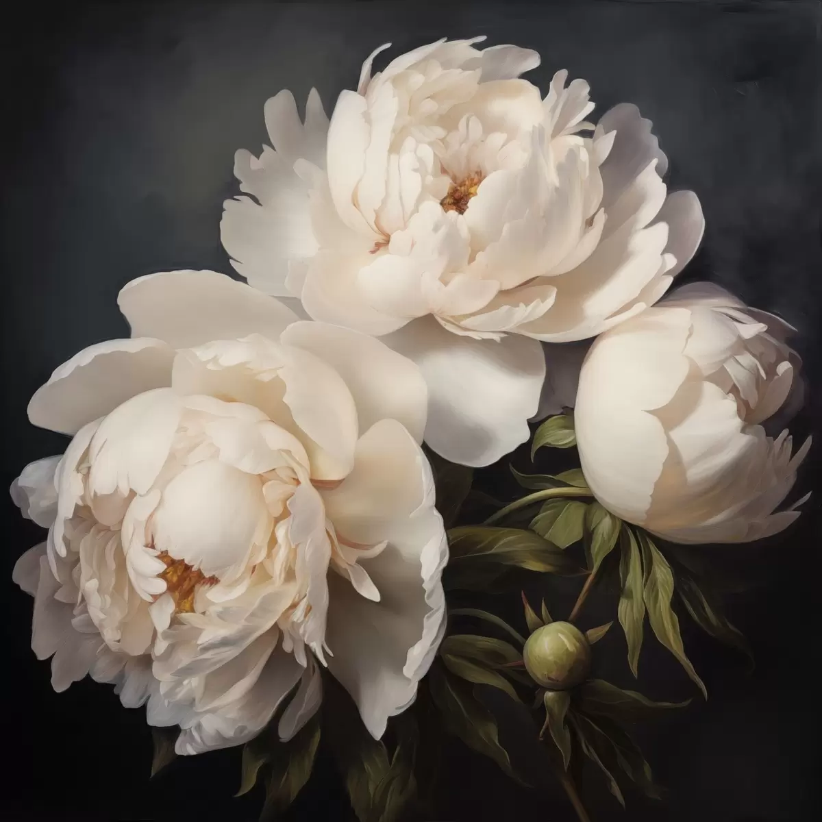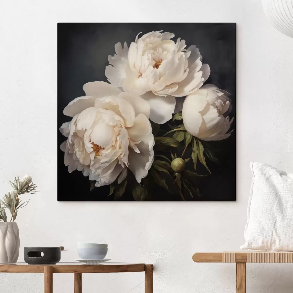 Pictură pe pânză Bujori albi pe fundal închis Nr s48101