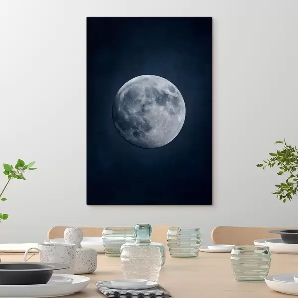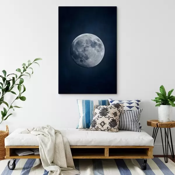 Pictură pe pânză lună plină centrată pe un fundal texturat de un albastru închis intens Nr s48122