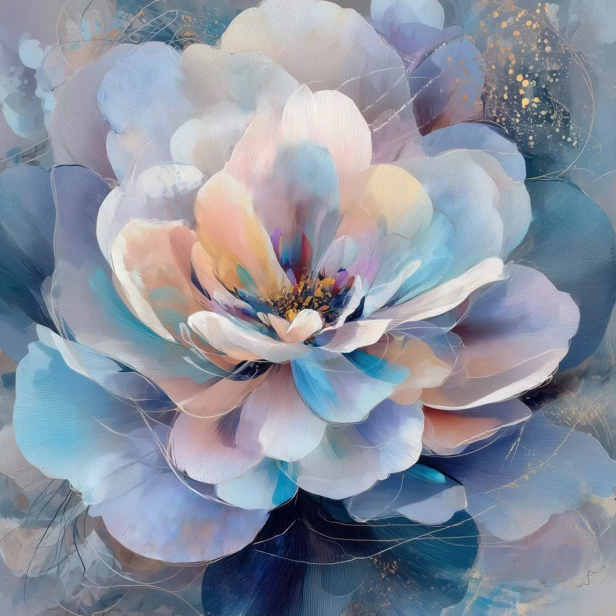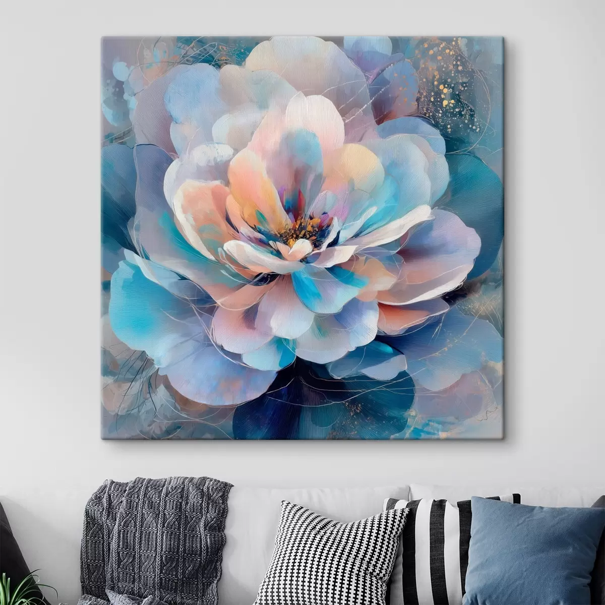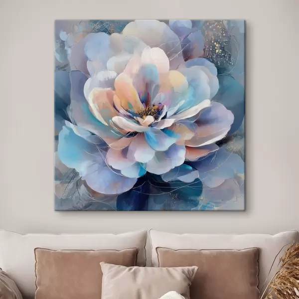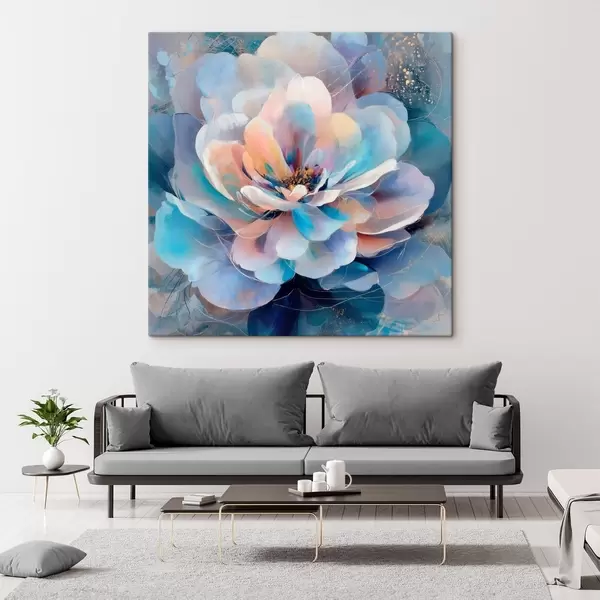 Pictură pe pânză Flori abstracte în nuanțe de roz și albastru, în stil pictural contemporan Nr s48185